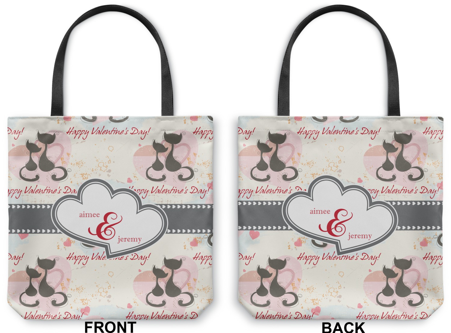 Our totes are made right here in the USA. Your design is printed on canvas fabric; the fabric is then cut and sewn on the sides and on the bottom to add an approximately 3.5 inch gusset. Black cotton handles are sewn in and reinforced. Your tote has a designs on both sides - the designs can be the same or different - the choice is yours. The inside of the tote has a black fused lining.
