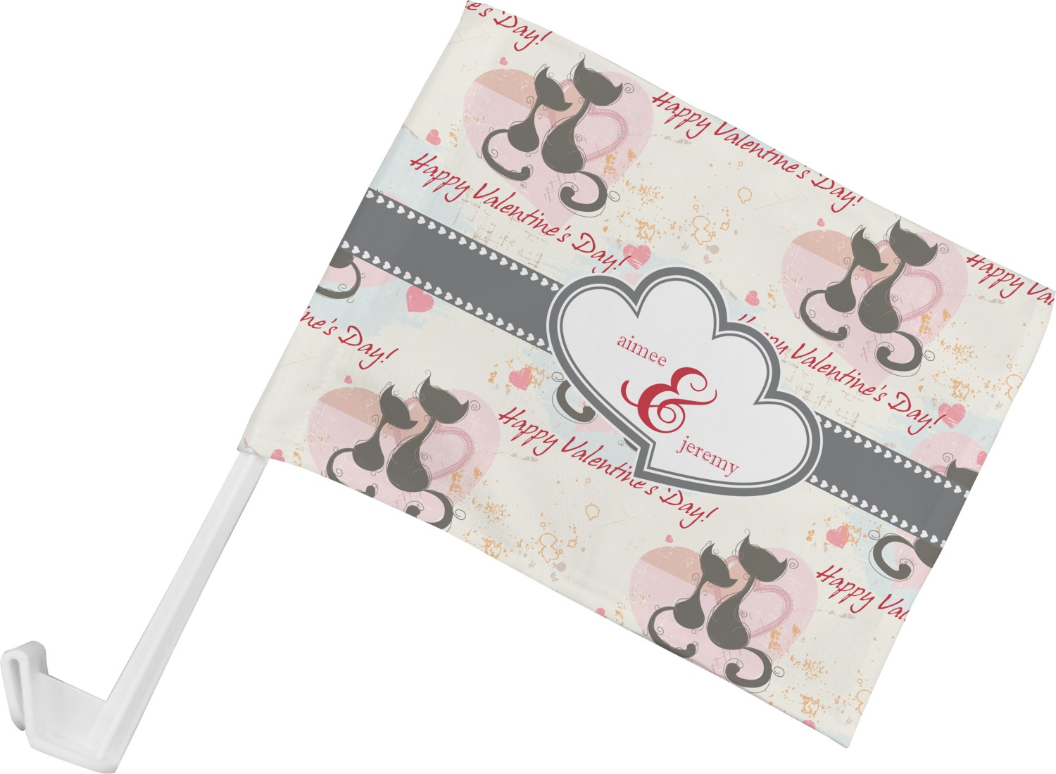 Our personalized flags are made from a durable, yet lightweight cloth that will proudly bear your logo or design of choice, while withstanding the outside elements. We have two size options - 8" x 11" and 11" x 15". Both come with a flag pole which includes a clip that secures the pole to the side window, whether it is rolled up or down. The flags are printed on both sides to display your design from all directions.