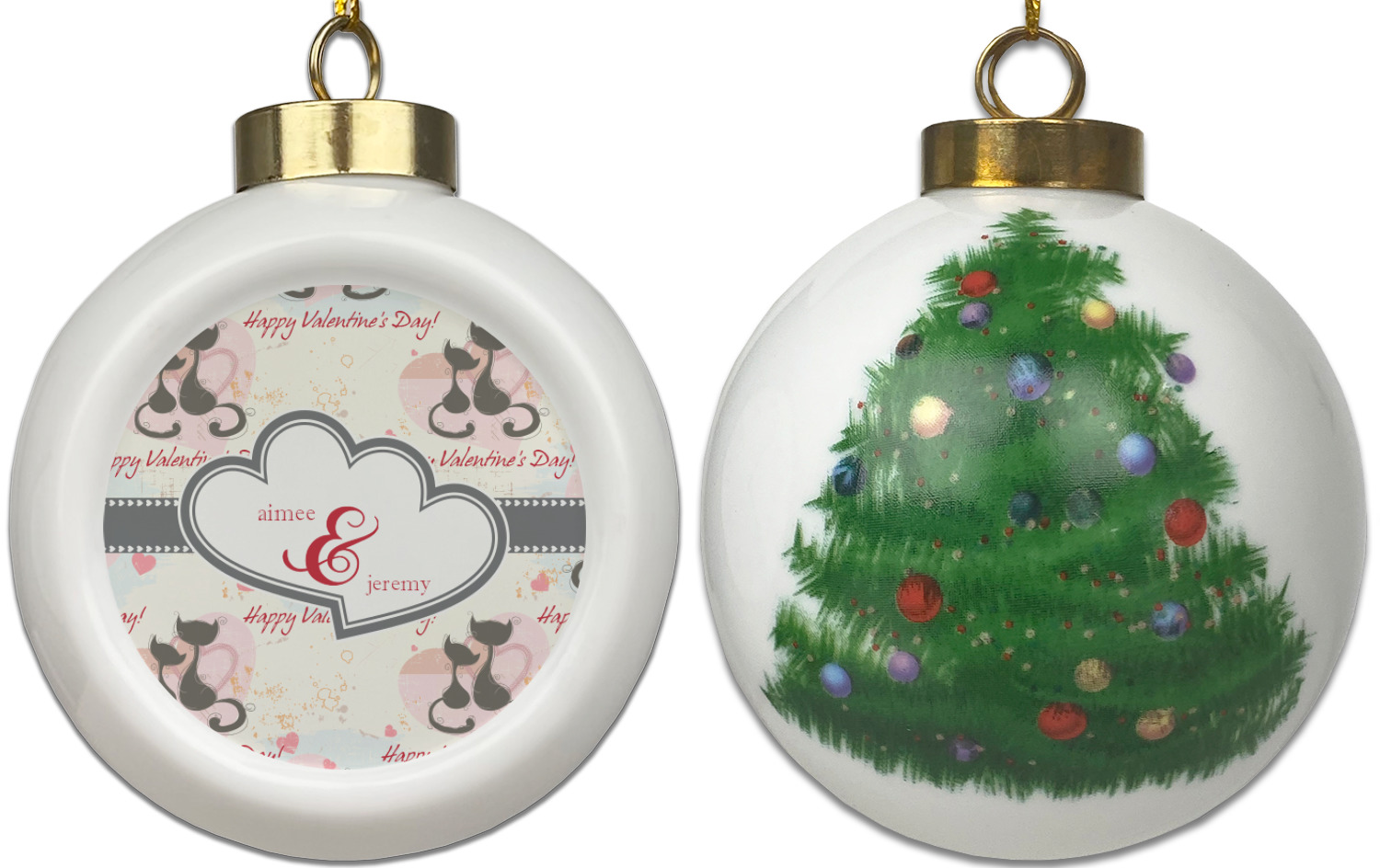 Our Christmas ornaments are a unique ceramic ball shape with a twist as it has a flat face to display your custom design! Select from one of our two design types - Christmas Tree or Poinsettia Garland - to adorn the curved back of your personal design. Each ornament measures 3H x 2.5W x 2D accompanied with a gold string accent for finishing touches to hang on your beautiful Christmas tree!