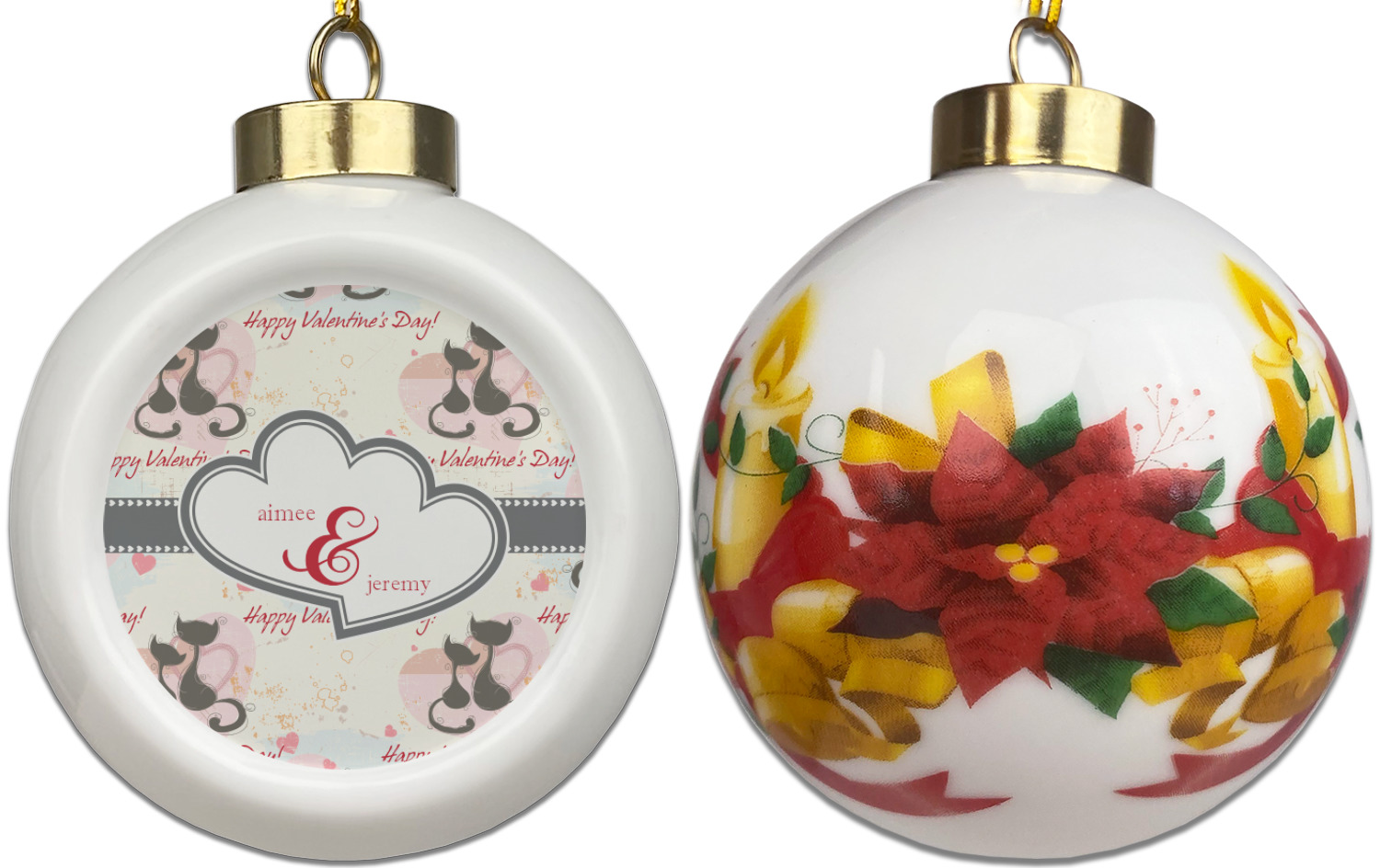 Our Christmas ornaments are a unique ceramic ball shape with a twist as it has a flat face to display your custom design! Select from one of our two design types - Christmas Tree or Poinsettia Garland - to adorn the curved back of your personal design. Each ornament measures 3H x 2.5W x 2D accompanied with a gold string accent for finishing touches to hang on your beautiful Christmas tree!