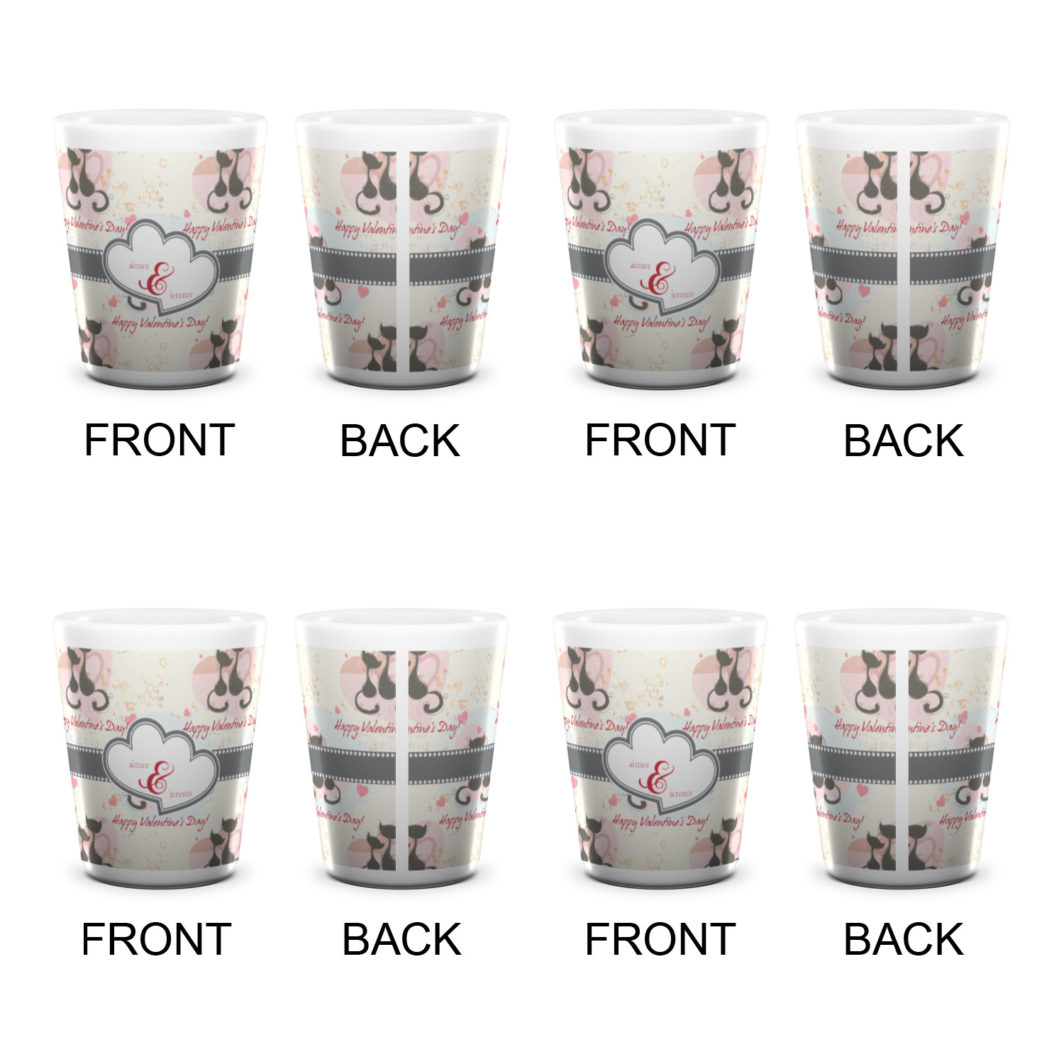 Made from ceramic these shot glasses are printed in full color with the design of your choice. These are a standard 1.5oz size and stand 2.25" tall. Available in a full white ceramic or a two-tone with a black color inside the shot glass. Buy a single or a set of 4, all of which can be designed separately to get you just what you want and need.