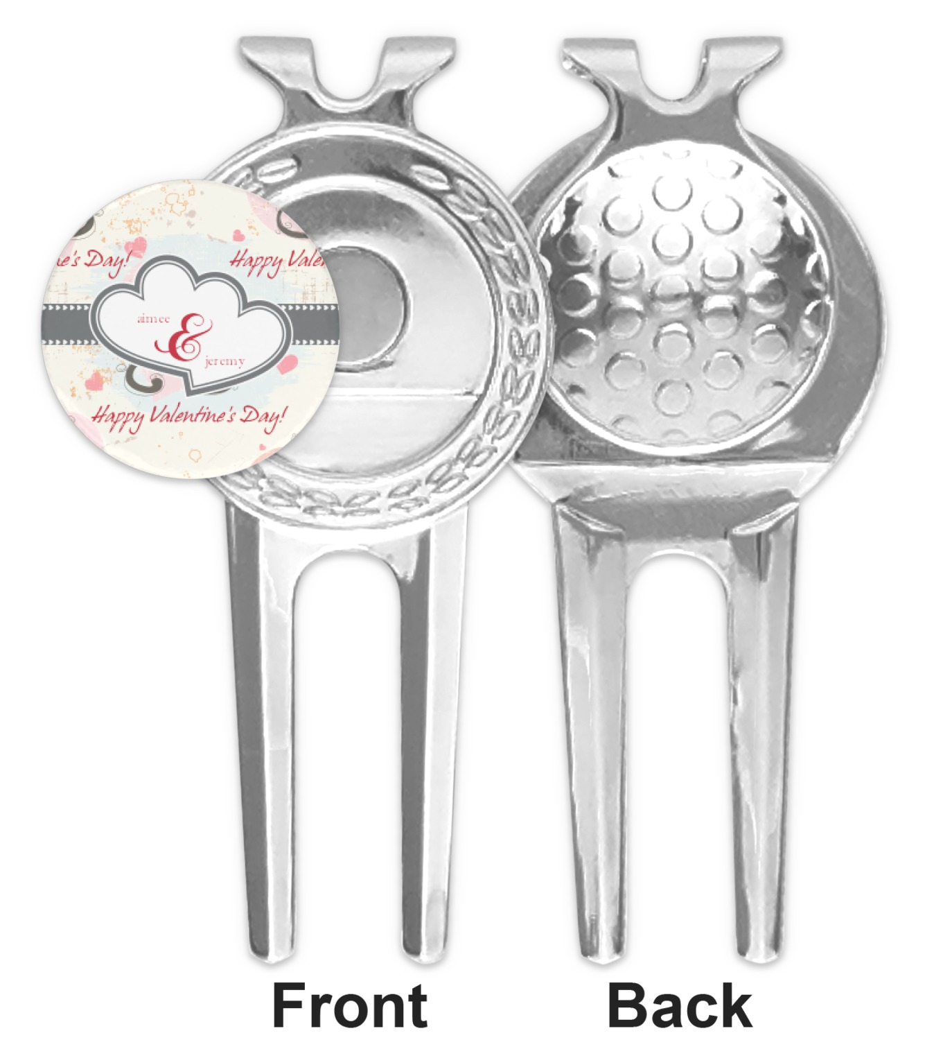 This great little stainless steel divot tool is two-pronged and is approximately 3.25" x 1.5". The two prongs make is a breeze to fix any divots. There is a golf ball shaped place on the back of your tool where your thumb can sit in order to do this easily.