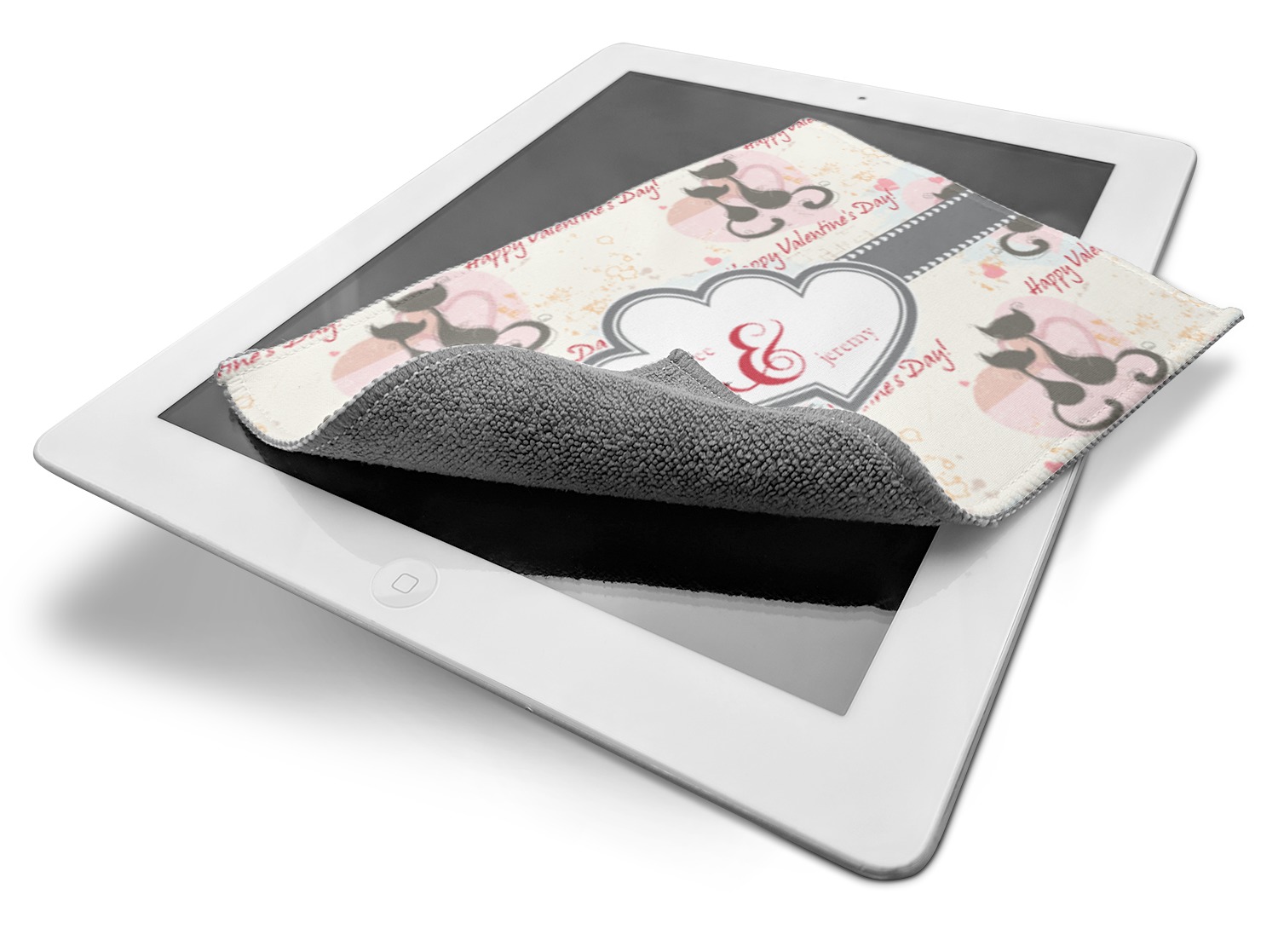 The back of this cleaning cloth is made from a gentle, grey microfiber material, that is masterful at removing smudges, grease, and fingerprints from lenses or electronic screens. The front side of the screen cleaner displays your personalized design in vibrant color. A beautiful stitch lines the edges and secures the microfiber to the polyester top. We provide you with the option of customizing this screen horizontally or vertically, depending on your preferences.