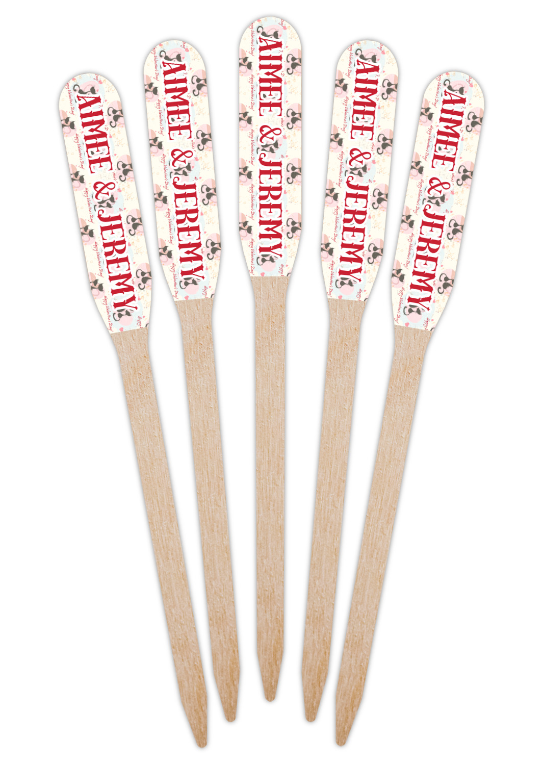 Our paddle style food & drink picks are available in 2 print styles - single sided and double sided.