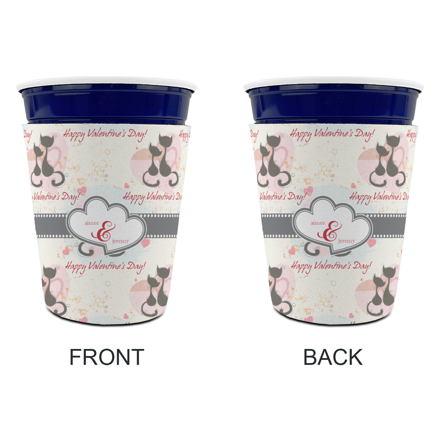 Made from neoprene with a polyester outer fabric and sewn seams, these premium quality party cup sleeves are very durable and will hold up to heavy use. They are available in 2 styles - with a bottom or just a sleeve to go around the outside of the tapered cup. The sleeve covers are about 4" tall and cover about 90% of the classic 16 oz. Solo cup.