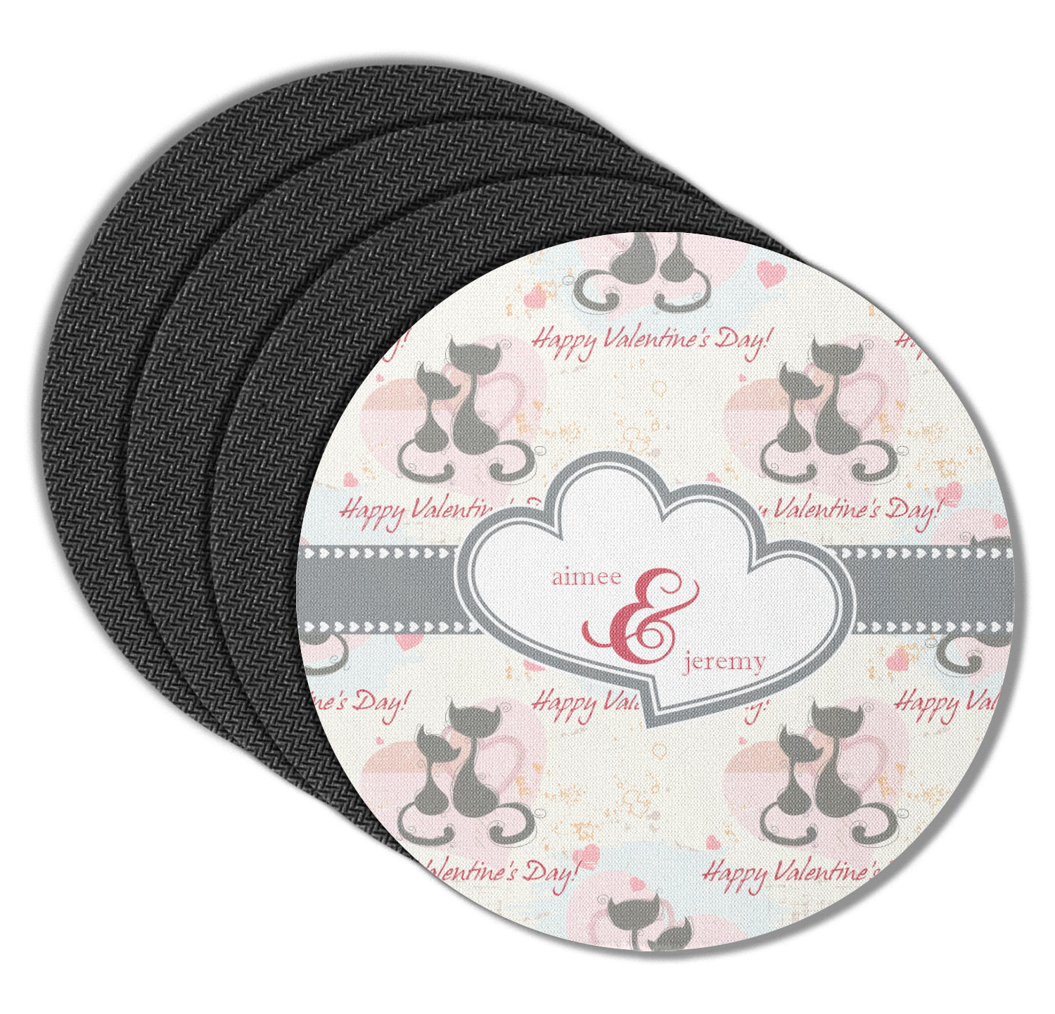 These drink coasters have a smooth, polyester top and a textured, rubber backing on its bottom. The non-slip rubber backing underneath works to keep any spills at bay. At 4 by 4 by 0.25 inches thick, these custom coasters are a suitable size for most drinkware. Your personalization is displayed atop the face of the cup coaster. We sell these rubber coasters in two different shapes: square and round. You can buy each shape as singulars or as a set of 4.
