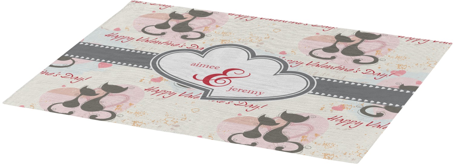 Each of our table mats are a poly twill material with woven burlap detailing. This creates a soft, quality placemat for us to fully print your personalized design across. The woven twill also adds a wrinkle-free surface to set your table! Each customizable placemat is a rectangle shape measuring at approximately 13 x 18 and printed here in the USA.