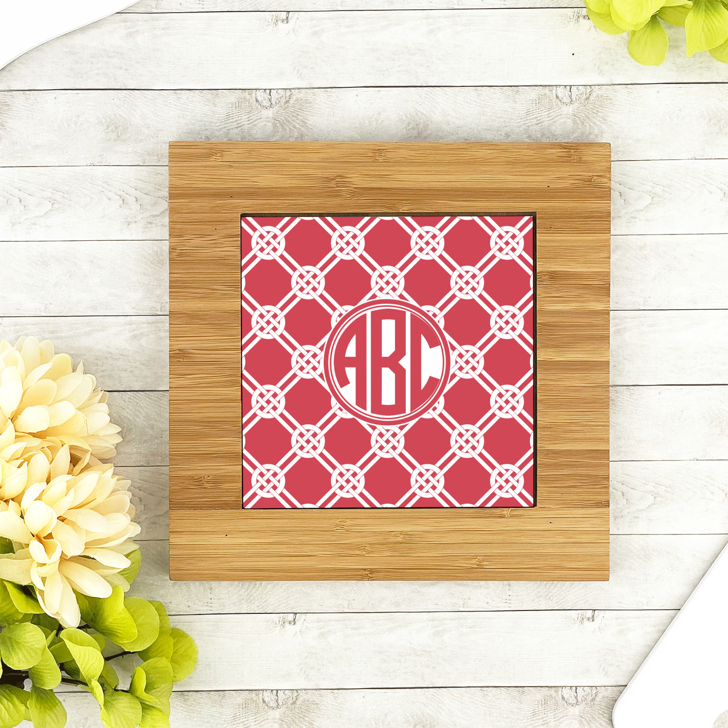The center is highlighted by a 6in ceramic tile that is printed with the design of your choice. The tile sits slightly higher than the bamboo to ensure the majority of the heat stays on the tile not on the bamboo.