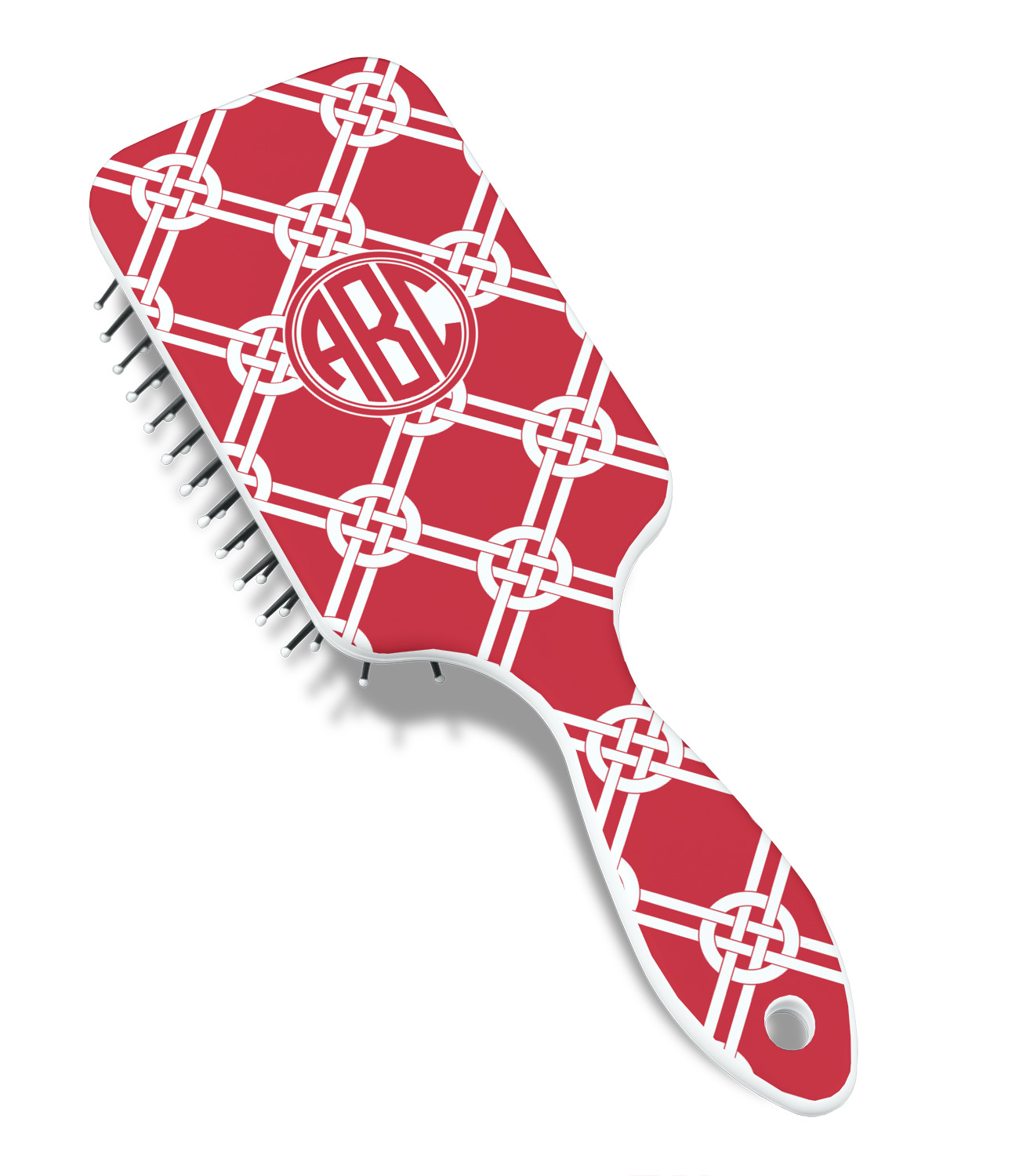 Your designed is printed on the front of the brush.; The back handle and sides are white.