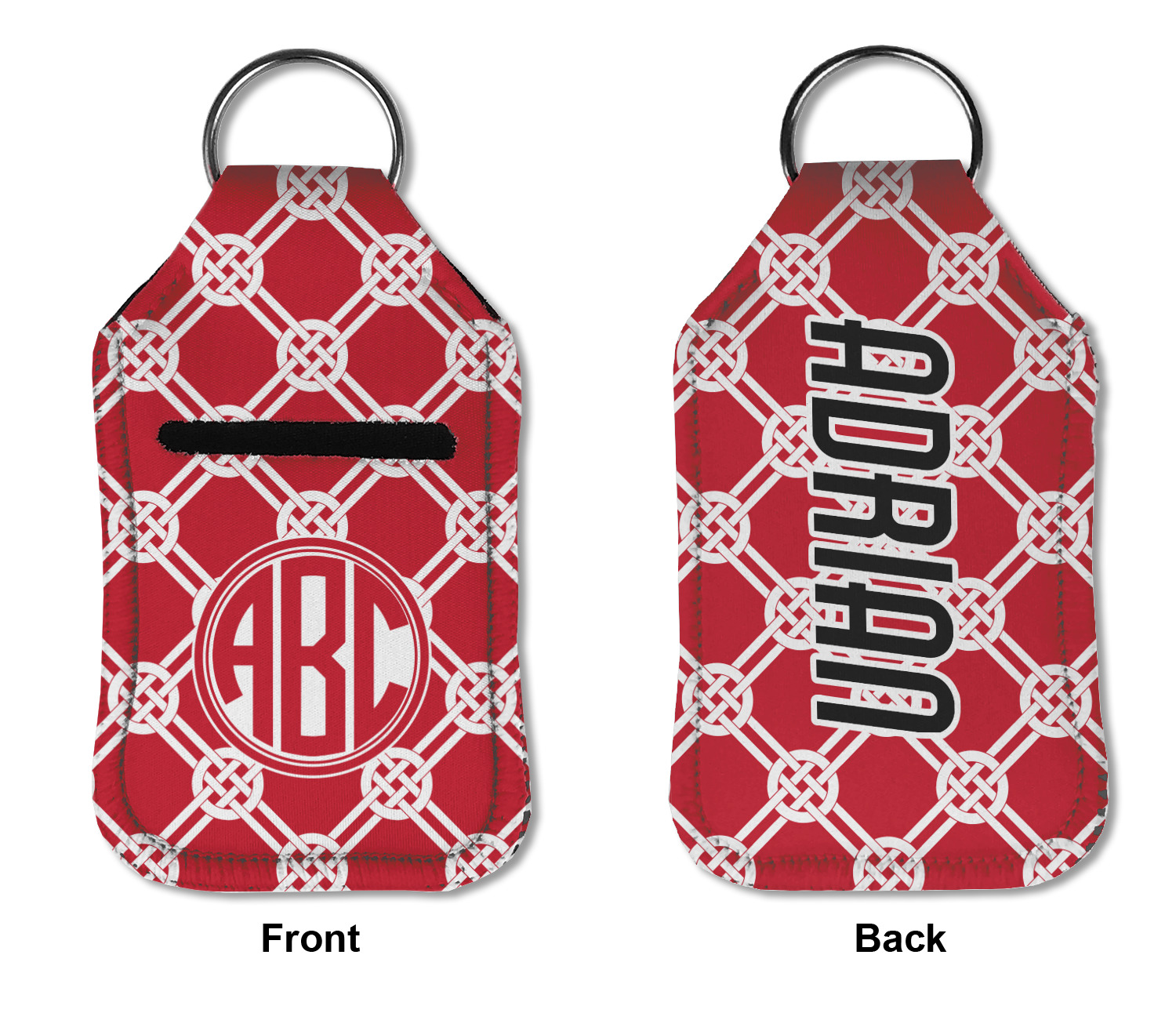 Each hand sanitizer holder comes with its own empty travel-sized, refillable hand sanitizer sure to fit snug in your customized sanitizer case! Our hand sanitizer cases are a durable, yet soft neoprene material sure to last any daily activities or travel agenda. Customize and personalize a hand sanitizer bottle holder with one of our two sizes - small (4.25" x 2.25") or large (5.5" x 2.5"). Each travel sanitizer holder comes with a keyring for attachment on bags, keys, or more!