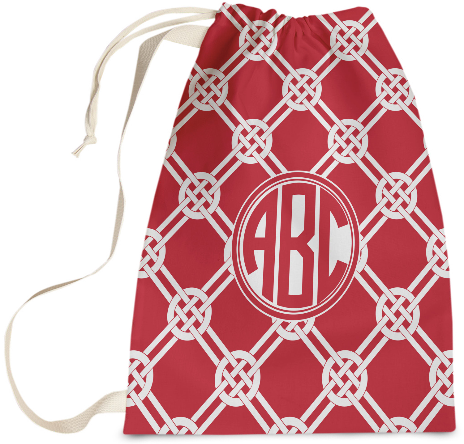 Carry your laundry in style with these customized laundry bags. Available in two sizes, featuring a natural colored woven strap and a cinch cord, these bags hold a lot of clothes or anything else you want to fit in them.