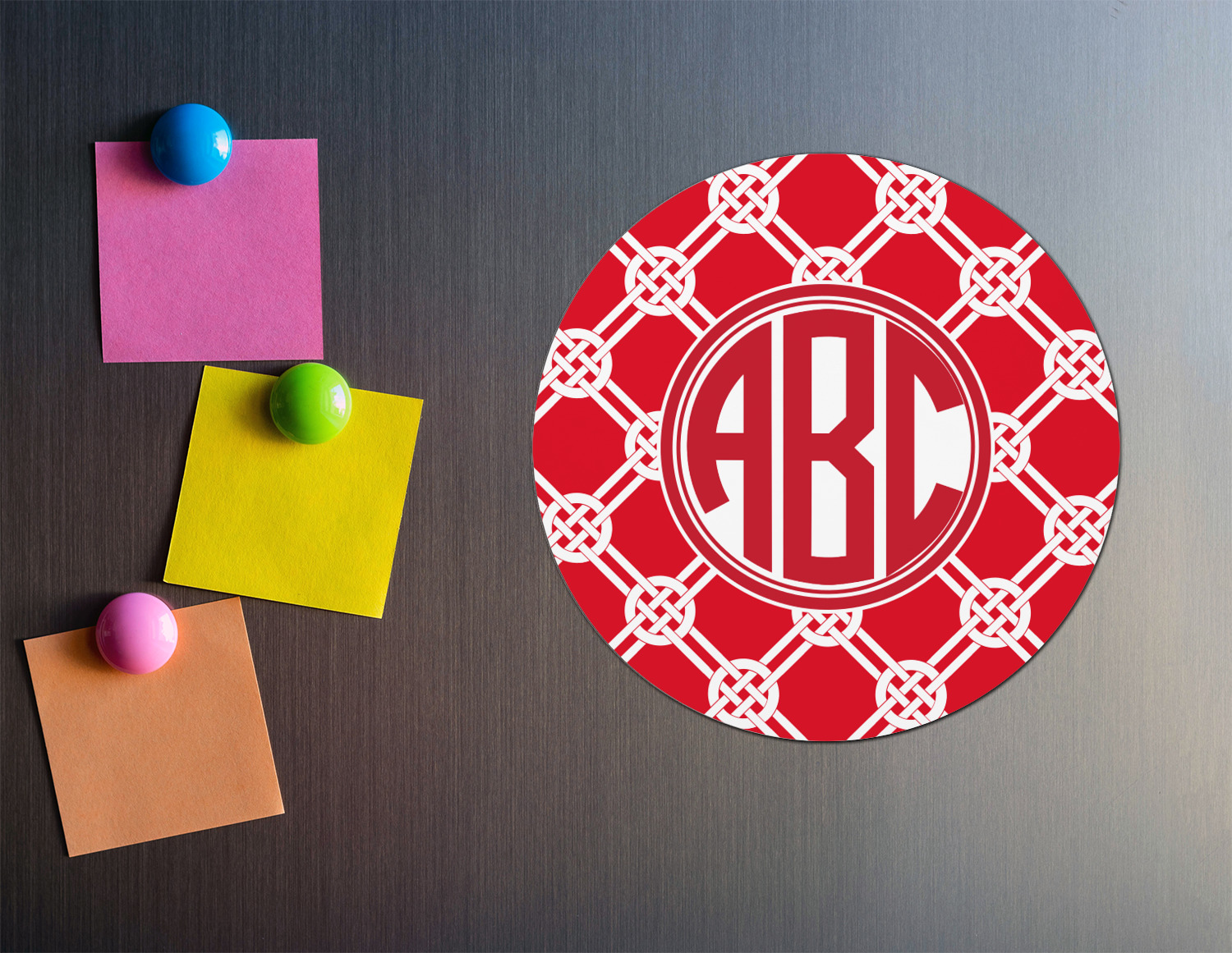 Get rid of all those unslightly magnets you've gathered from food delivery places and jazz up your fridge with our personalized round magnets. If you're looking for a small gift with a big bang you've found them!! With the designs and colors from our collections you are sure to find one that fits anyone's personality.