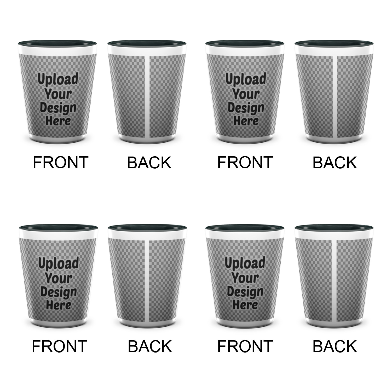 Made from ceramic these shot glasses are printed in full color with the design of your choice. These are a standard 1.5oz size and stand 2.25" tall. Available in a full white ceramic or a two-tone with a black color inside the shot glass. Buy a single or a set of 4, all of which can be designed separately to get you just what you want and need.