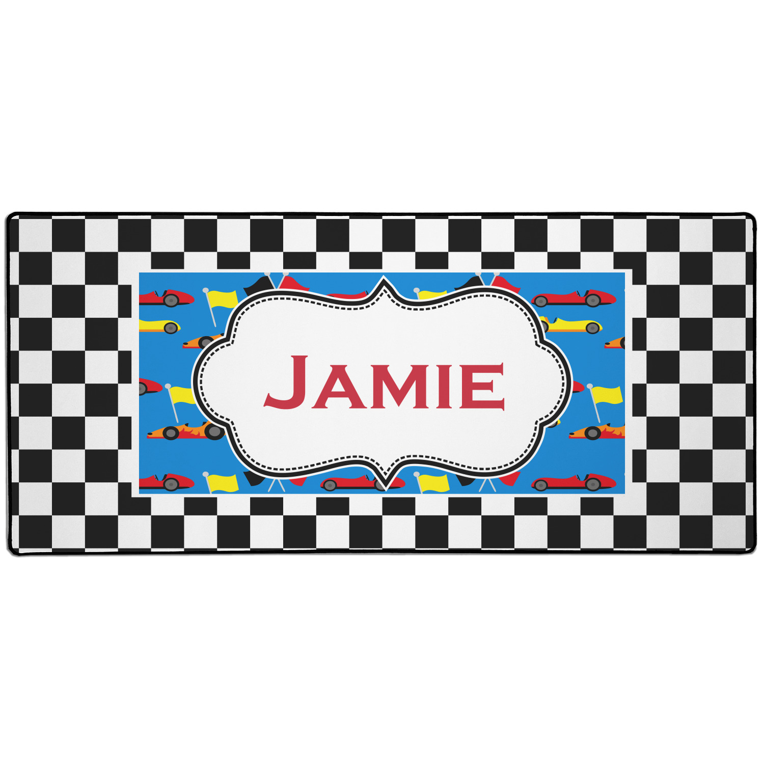 We love this checker and race car design; it uses our new concentric design style and we think it looks simply fabulous. We chose the use our race cars background on the inside, while using our classic checkers background on the outside.