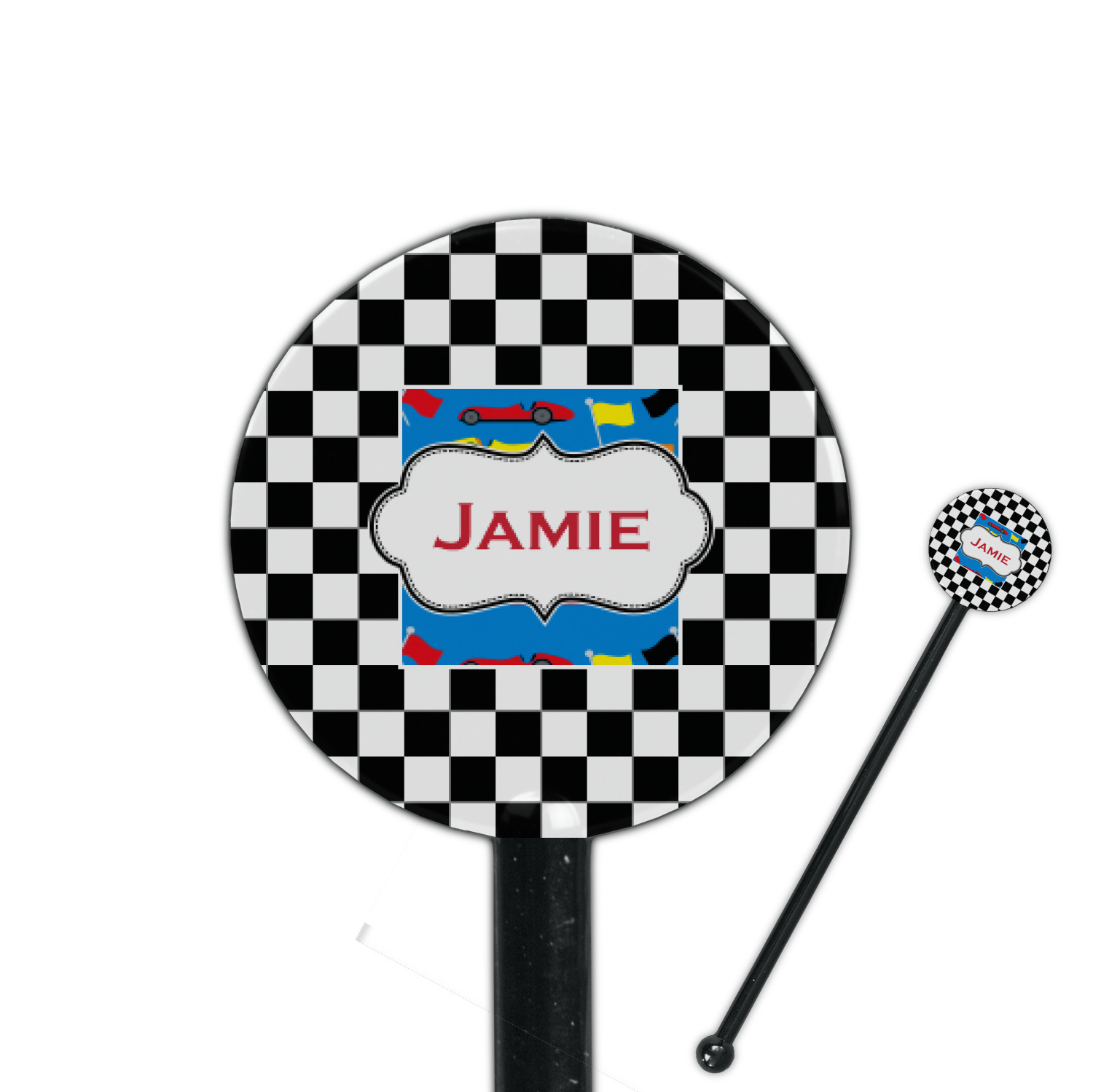 We love this checker and race car design; it uses our new concentric design style and we think it looks simply fabulous. We chose the use our race cars background on the inside, while using our classic checkers background on the outside.