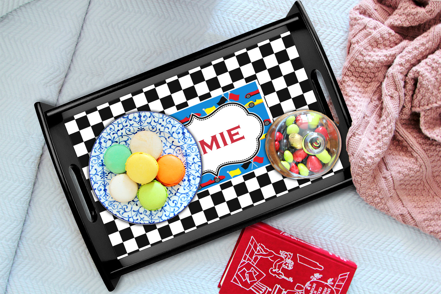 We love this checker and race car design; it uses our new concentric design style and we think it looks simply fabulous. We chose the use our race cars background on the inside, while using our classic checkers background on the outside.