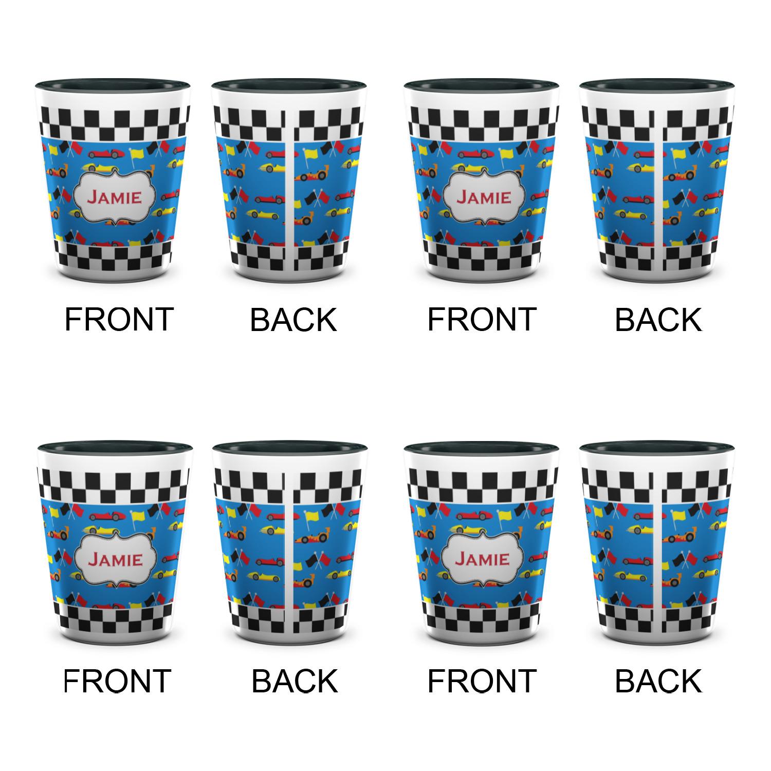 Made from ceramic these shot glasses are printed in full color with the design of your choice. These are a standard 1.5oz size and stand 2.25" tall. Available in a full white ceramic or a two-tone with a black color inside the shot glass. Buy a single or a set of 4, all of which can be designed separately to get you just what you want and need.