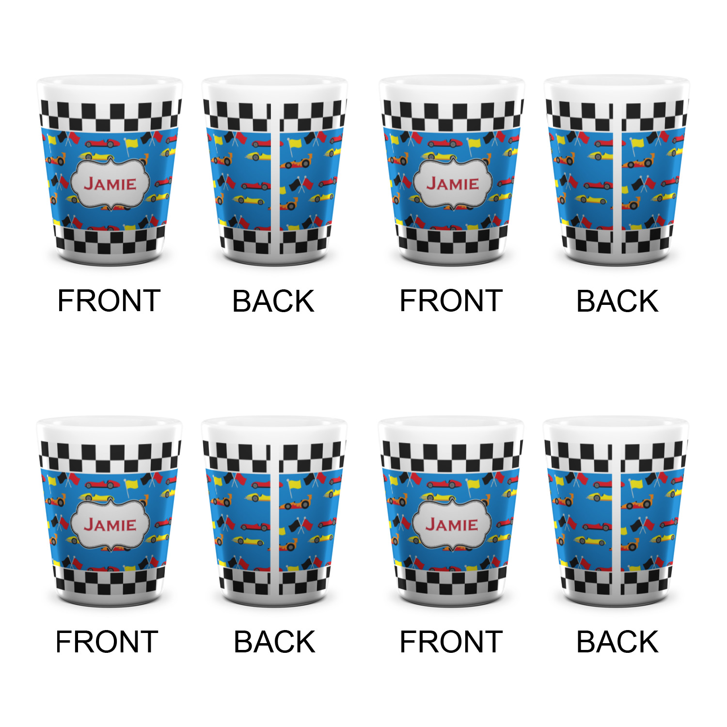 We love this checker and race car design; it uses our new concentric design style and we think it looks simply fabulous. We chose the use our race cars background on the inside, while using our classic checkers background on the outside.