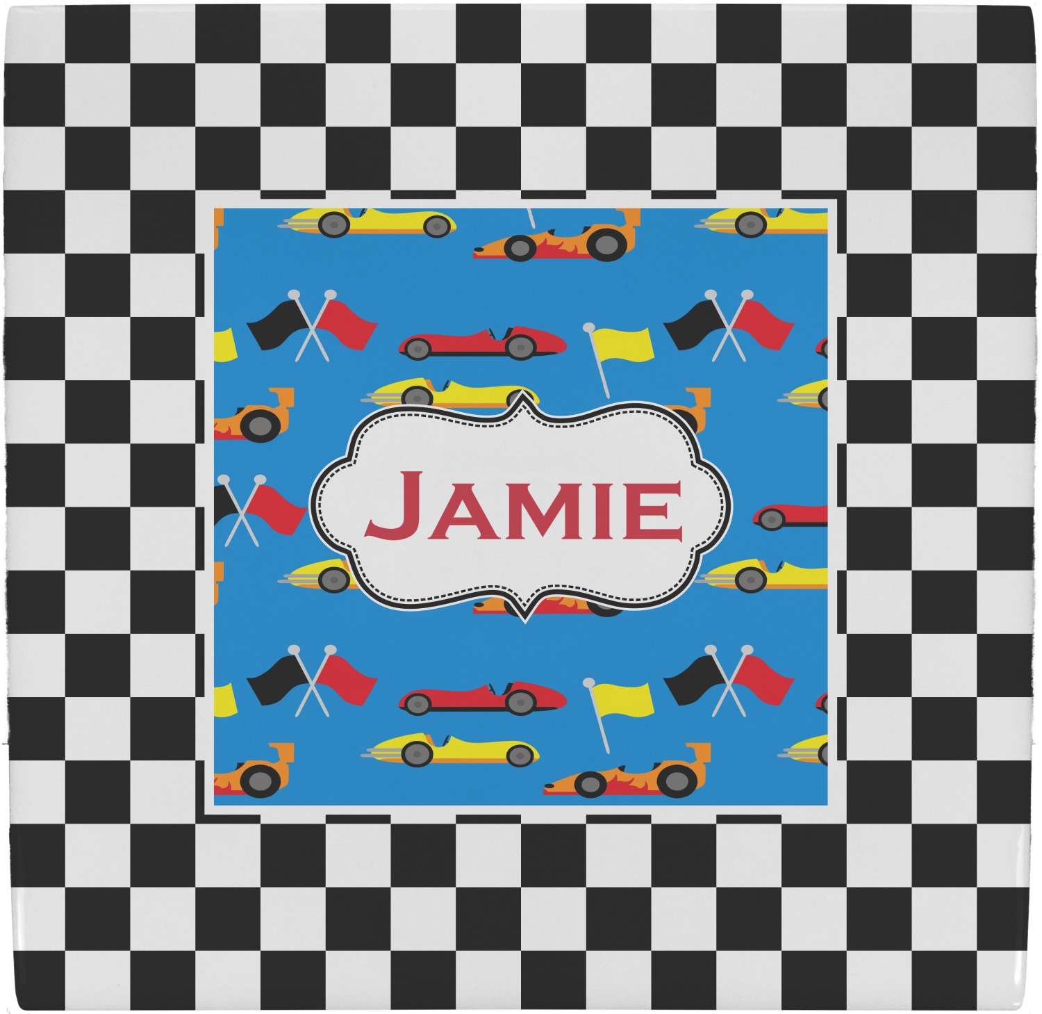 We love this checker and race car design; it uses our new concentric design style and we think it looks simply fabulous. We chose the use our race cars background on the inside, while using our classic checkers background on the outside.
