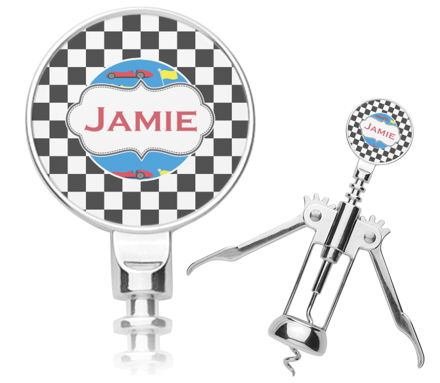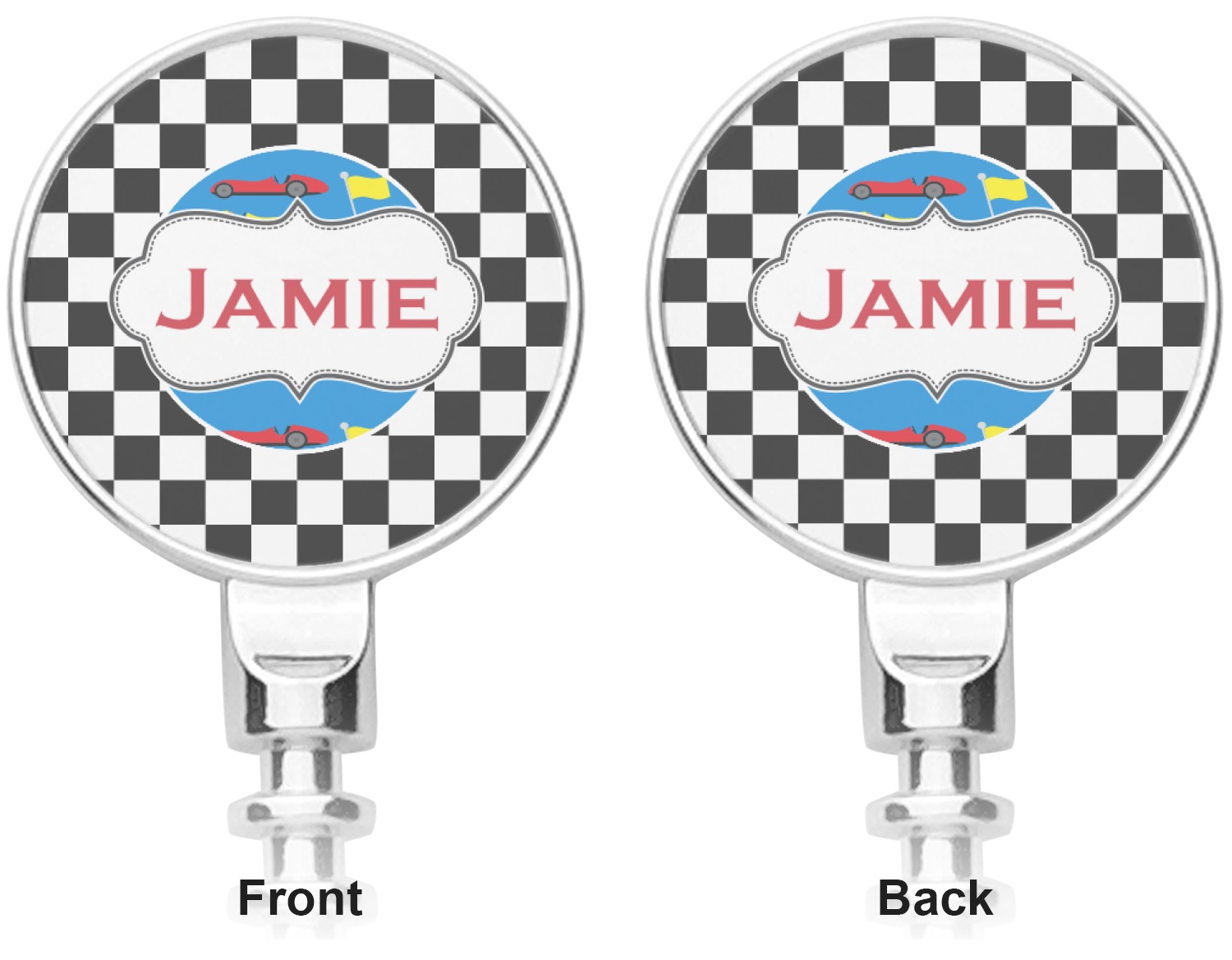 We love this checker and race car design; it uses our new concentric design style and we think it looks simply fabulous. We chose the use our race cars background on the inside, while using our classic checkers background on the outside.