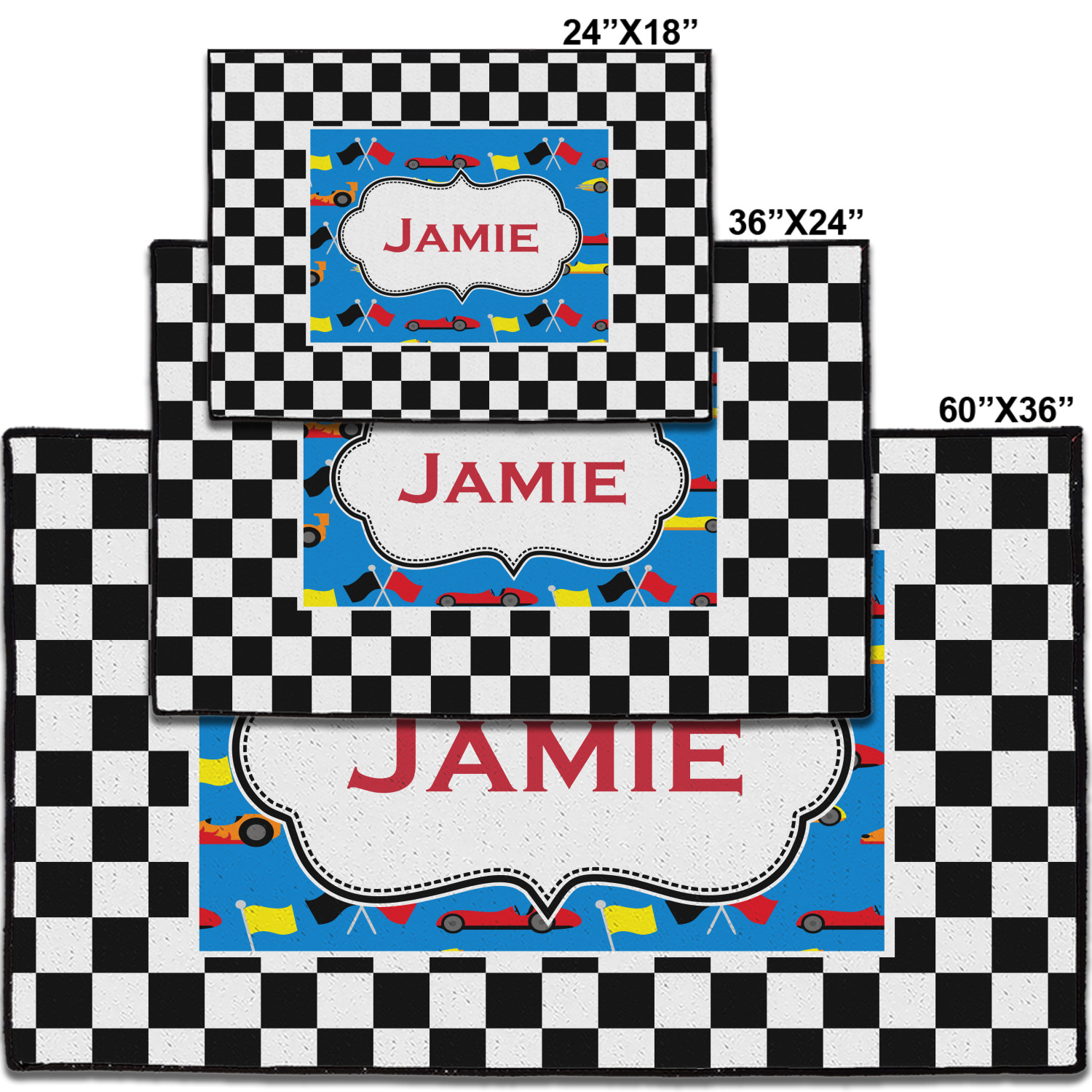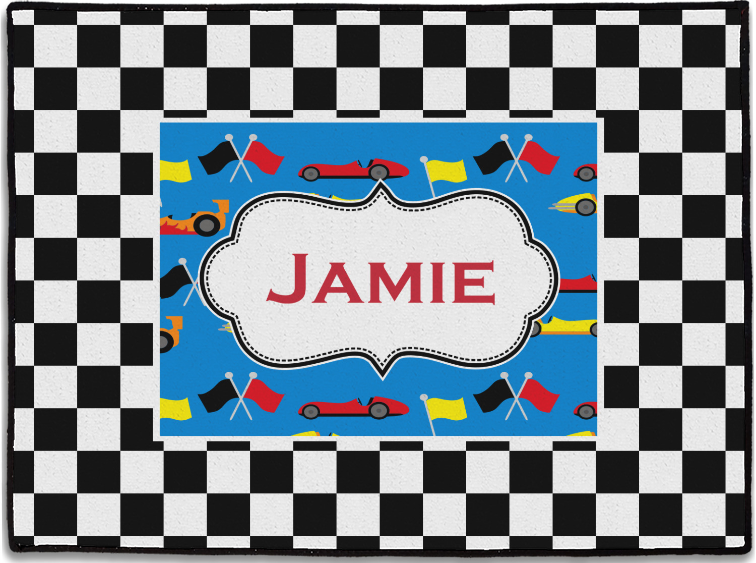 We love this checker and race car design; it uses our new concentric design style and we think it looks simply fabulous. We chose the use our race cars background on the inside, while using our classic checkers background on the outside.