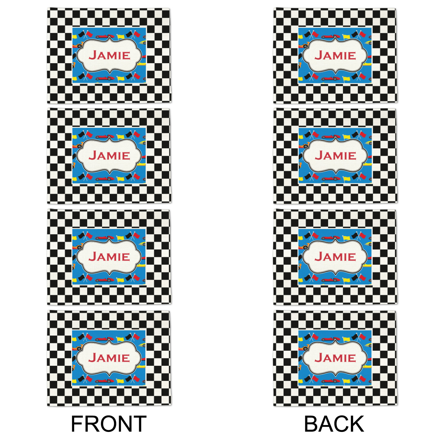We love this checker and race car design; it uses our new concentric design style and we think it looks simply fabulous. We chose the use our race cars background on the inside, while using our classic checkers background on the outside.