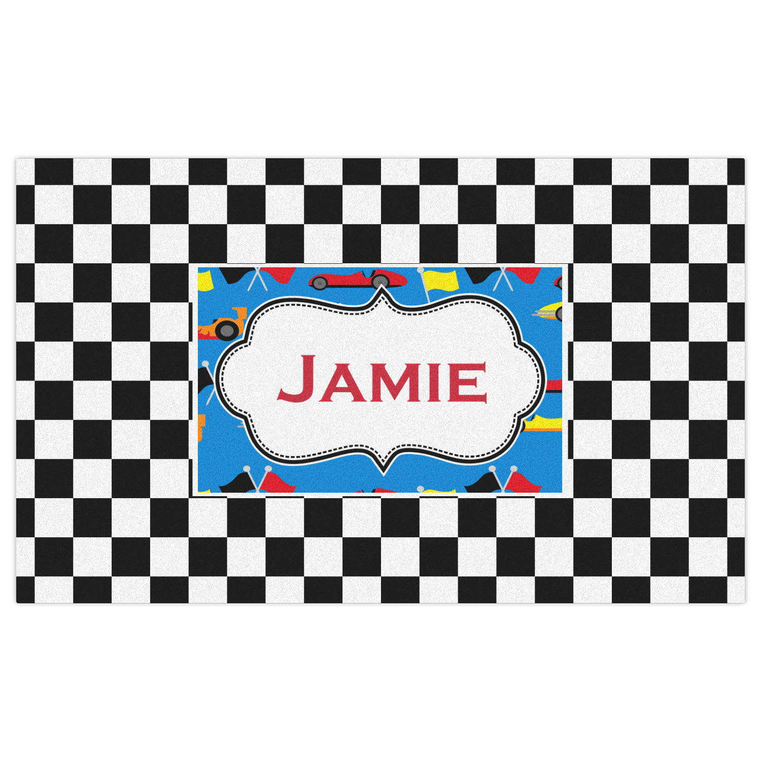 We love this checker and race car design; it uses our new concentric design style and we think it looks simply fabulous. We chose the use our race cars background on the inside, while using our classic checkers background on the outside.