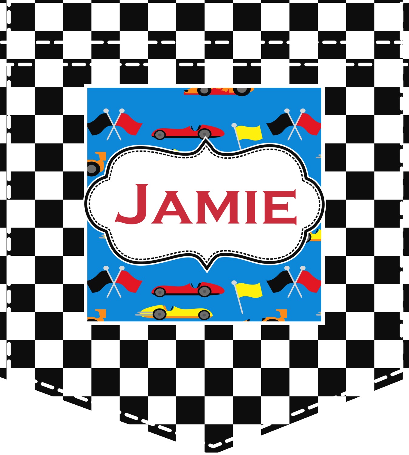 We love this checker and race car design; it uses our new concentric design style and we think it looks simply fabulous. We chose the use our race cars background on the inside, while using our classic checkers background on the outside.