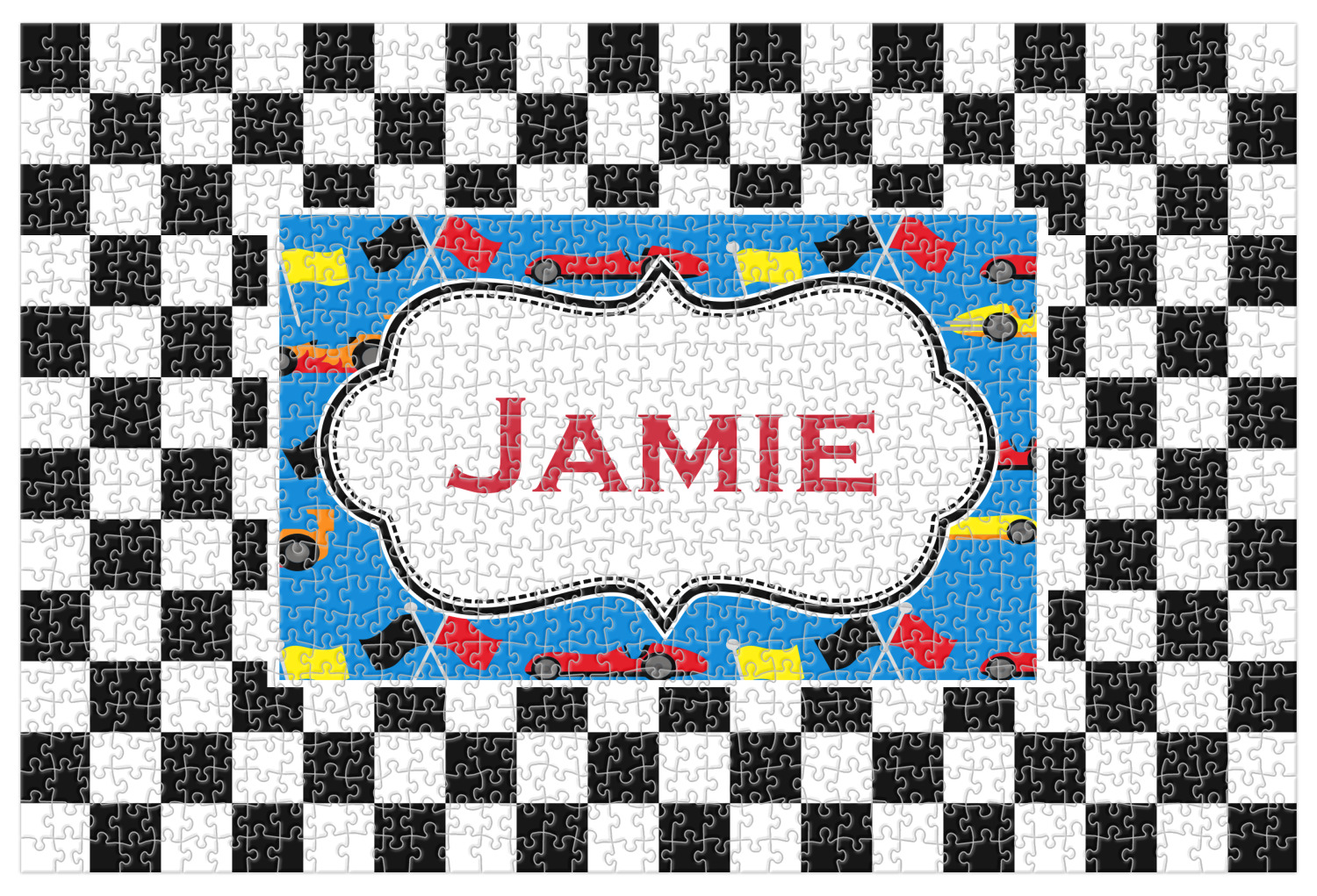 We love this checker and race car design; it uses our new concentric design style and we think it looks simply fabulous. We chose the use our race cars background on the inside, while using our classic checkers background on the outside.