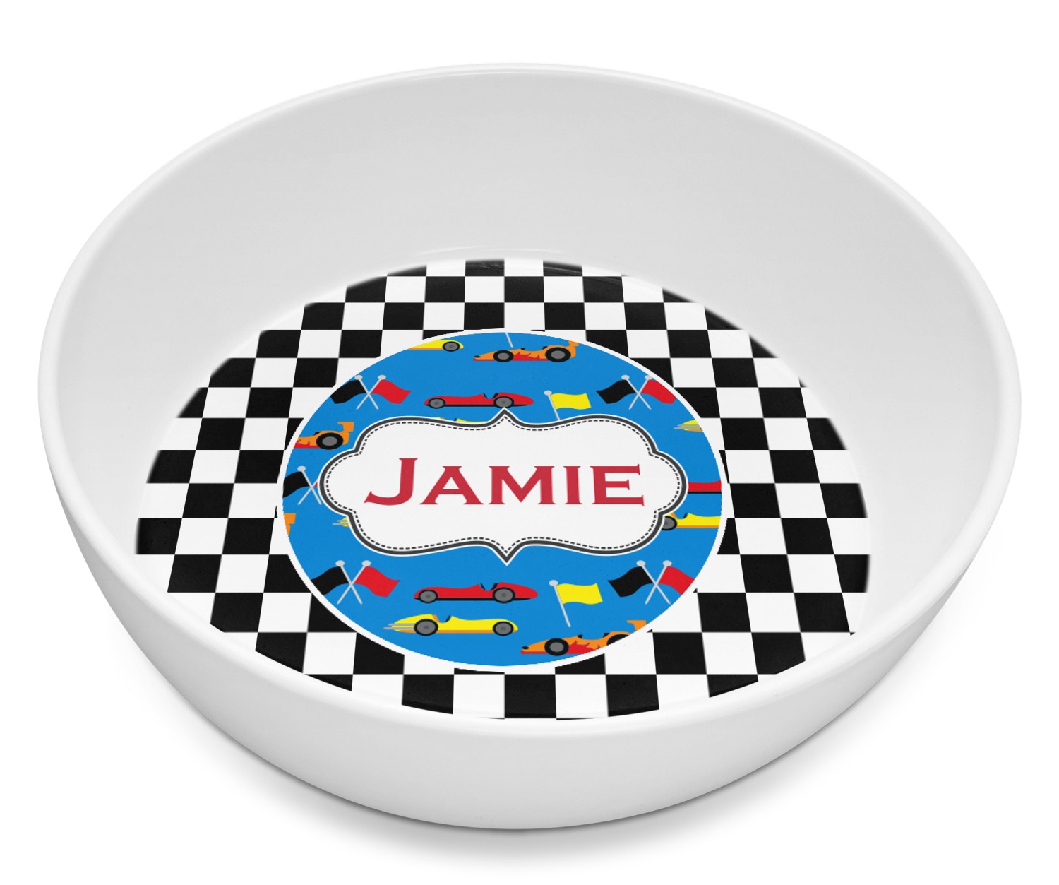 We love this checker and race car design; it uses our new concentric design style and we think it looks simply fabulous. We chose the use our race cars background on the inside, while using our classic checkers background on the outside.