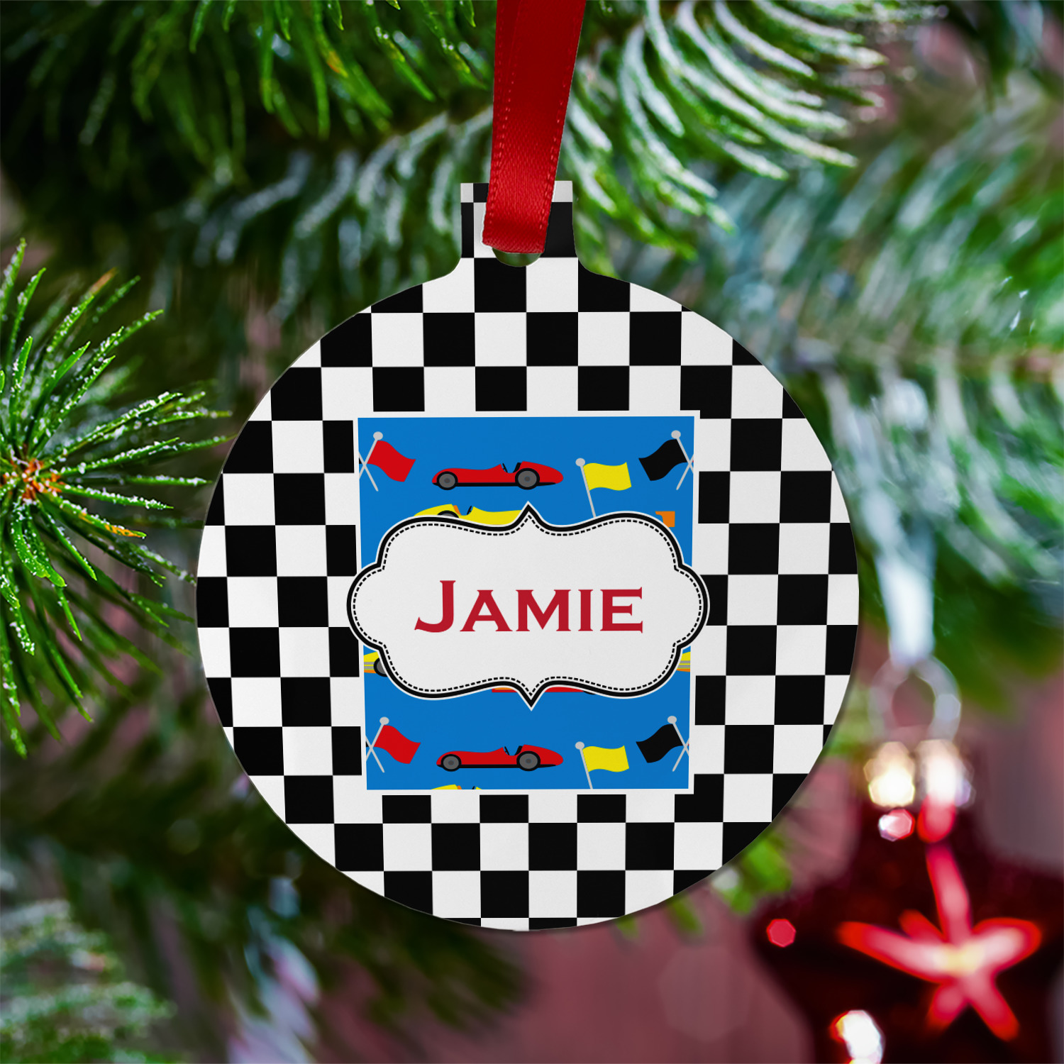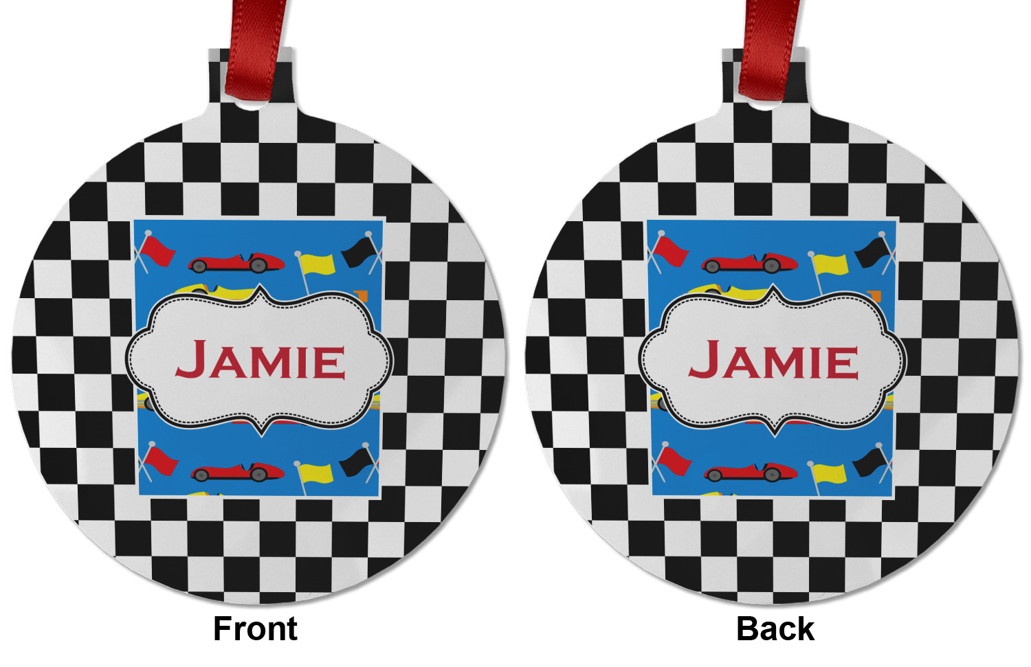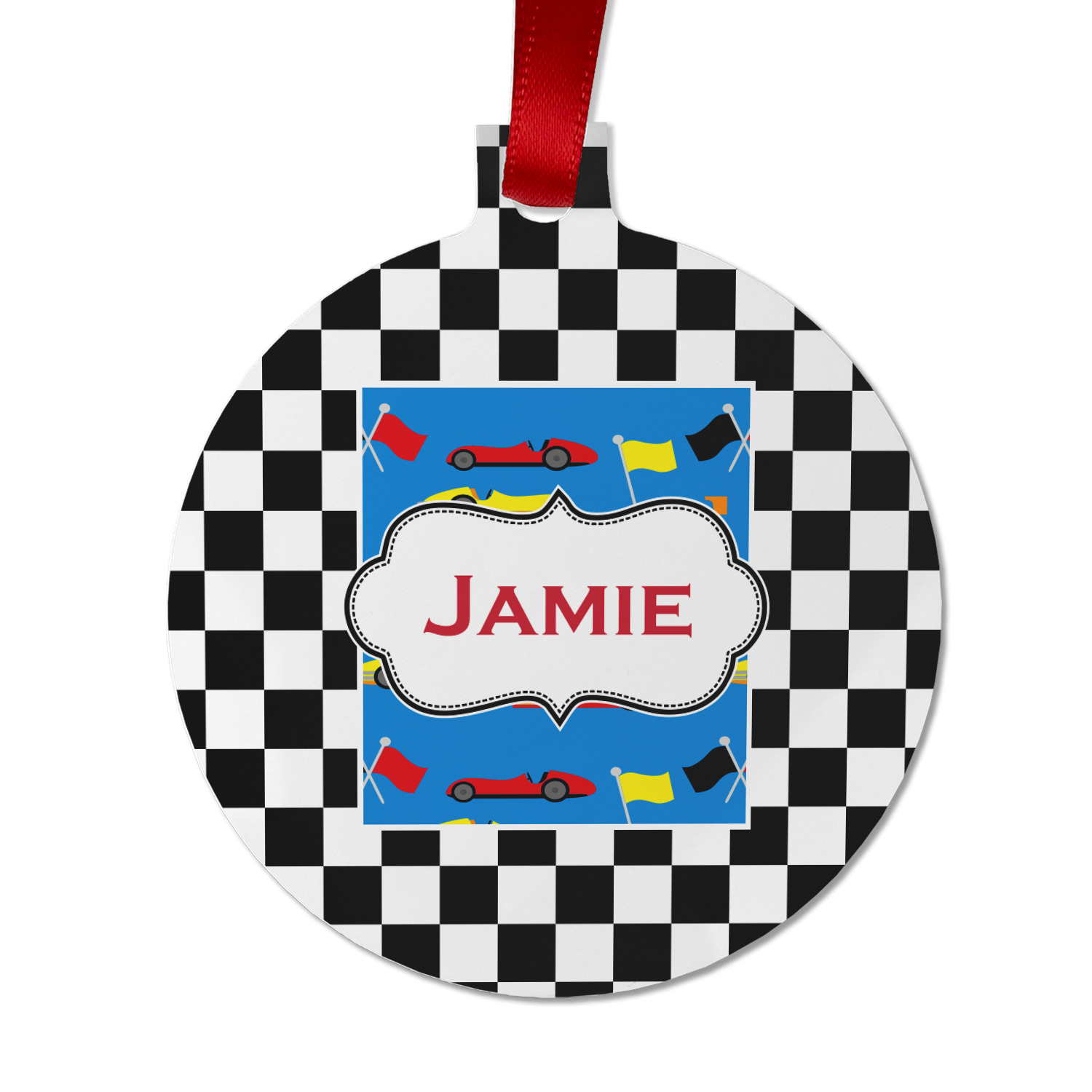 We love this checker and race car design; it uses our new concentric design style and we think it looks simply fabulous. We chose the use our race cars background on the inside, while using our classic checkers background on the outside.
