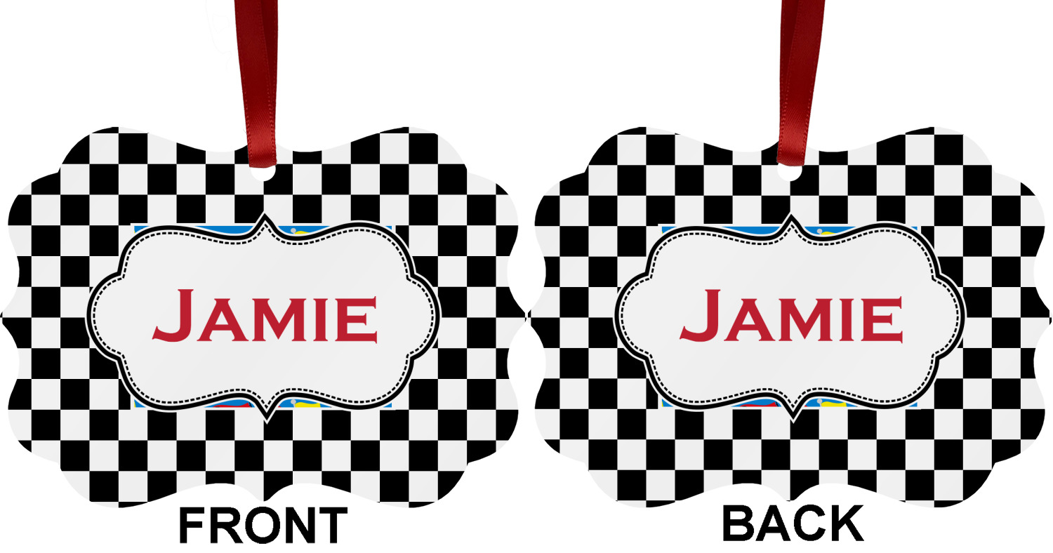 We love this checker and race car design; it uses our new concentric design style and we think it looks simply fabulous. We chose the use our race cars background on the inside, while using our classic checkers background on the outside.