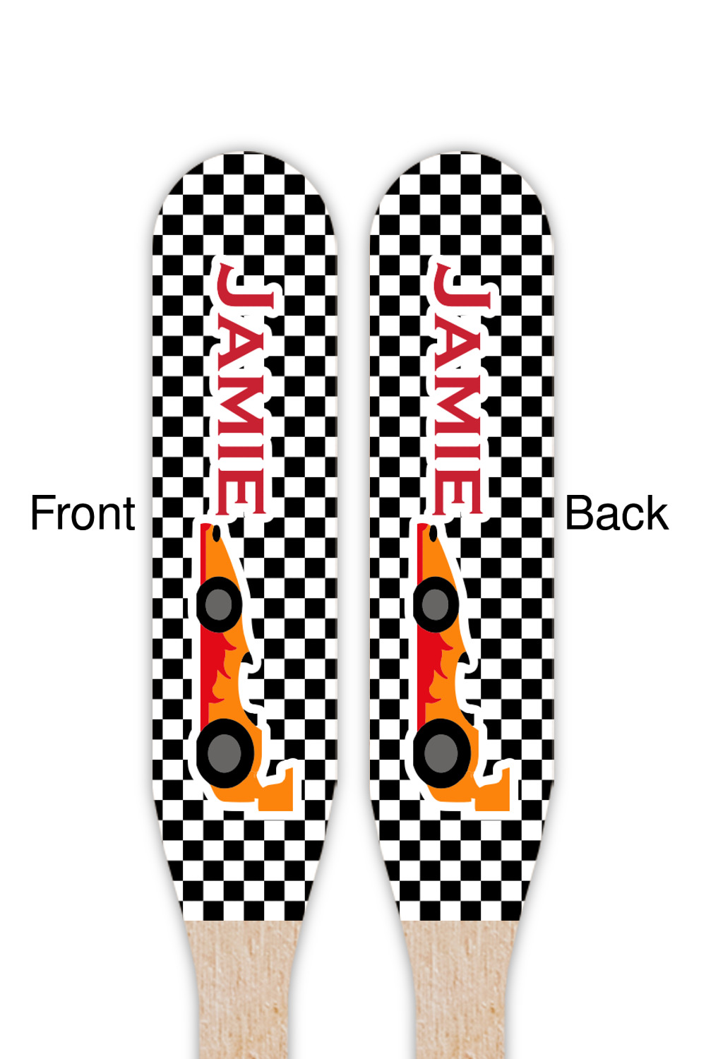 Our paddle style food & drink picks are available in 2 print styles - single sided and double sided.