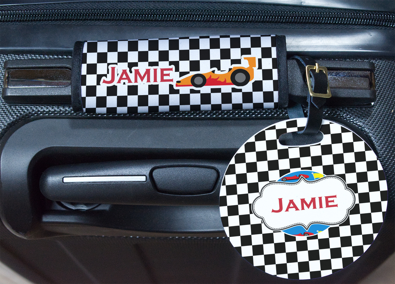 We love this checker and race car design; it uses our new concentric design style and we think it looks simply fabulous. We chose the use our race cars background on the inside, while using our classic checkers background on the outside.