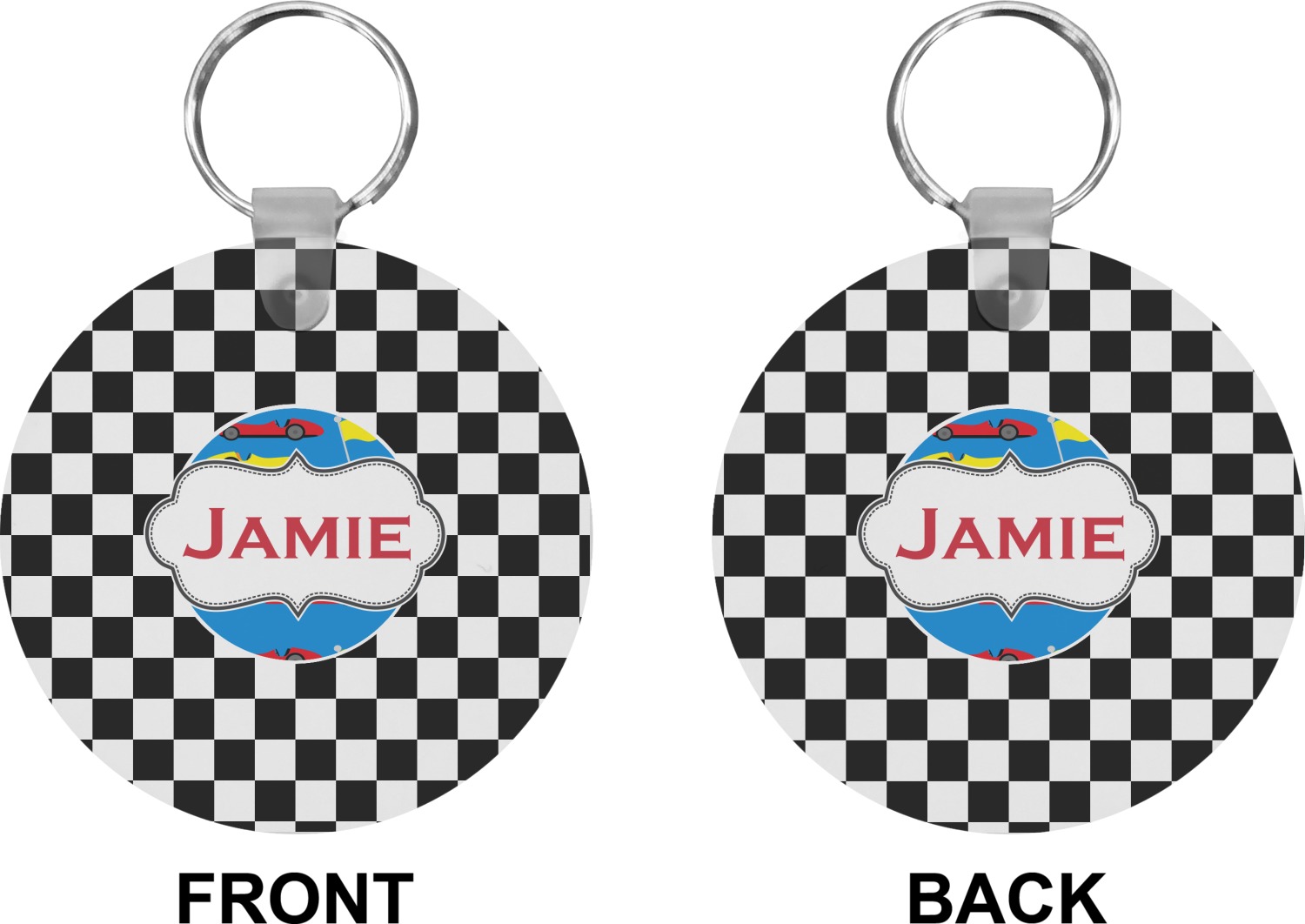 Our personalized keychains attach to the included metal, split key ring with a plastic, removable snap. Since a metal ring is included with your purchase, you have the liberty to keep your keys together on the ring, with or without your unique keychain. We offer this keychain in three different shapes: circle, heart, or diamond. We print your personalized design(s) on both sides of the key chain, and the surface has a glossy, reflective finish that only emphasizes your design. Each keychain is approximately 2.25 by 2.25 inches.