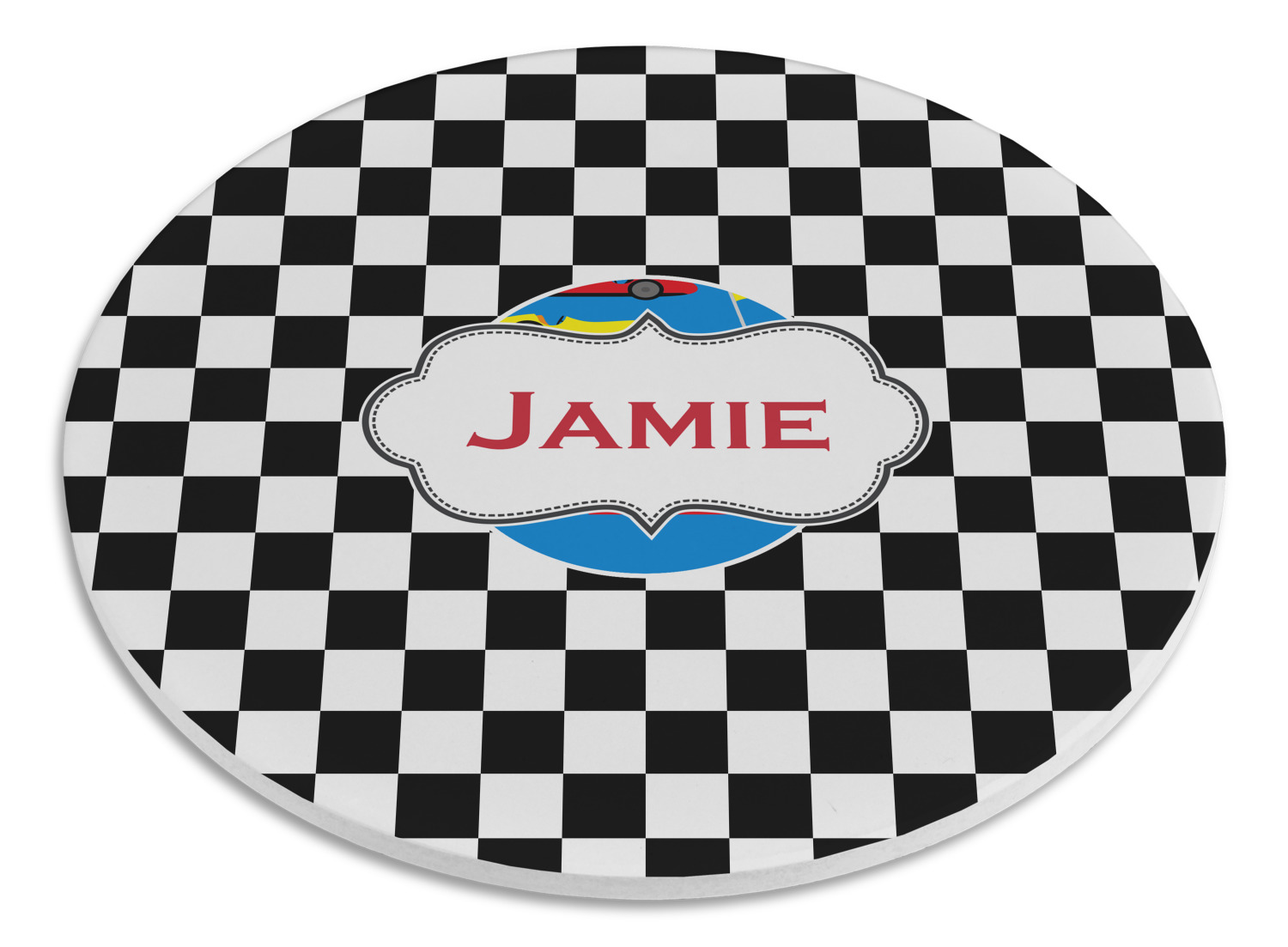 We love this checker and race car design; it uses our new concentric design style and we think it looks simply fabulous. We chose the use our race cars background on the inside, while using our classic checkers background on the outside.