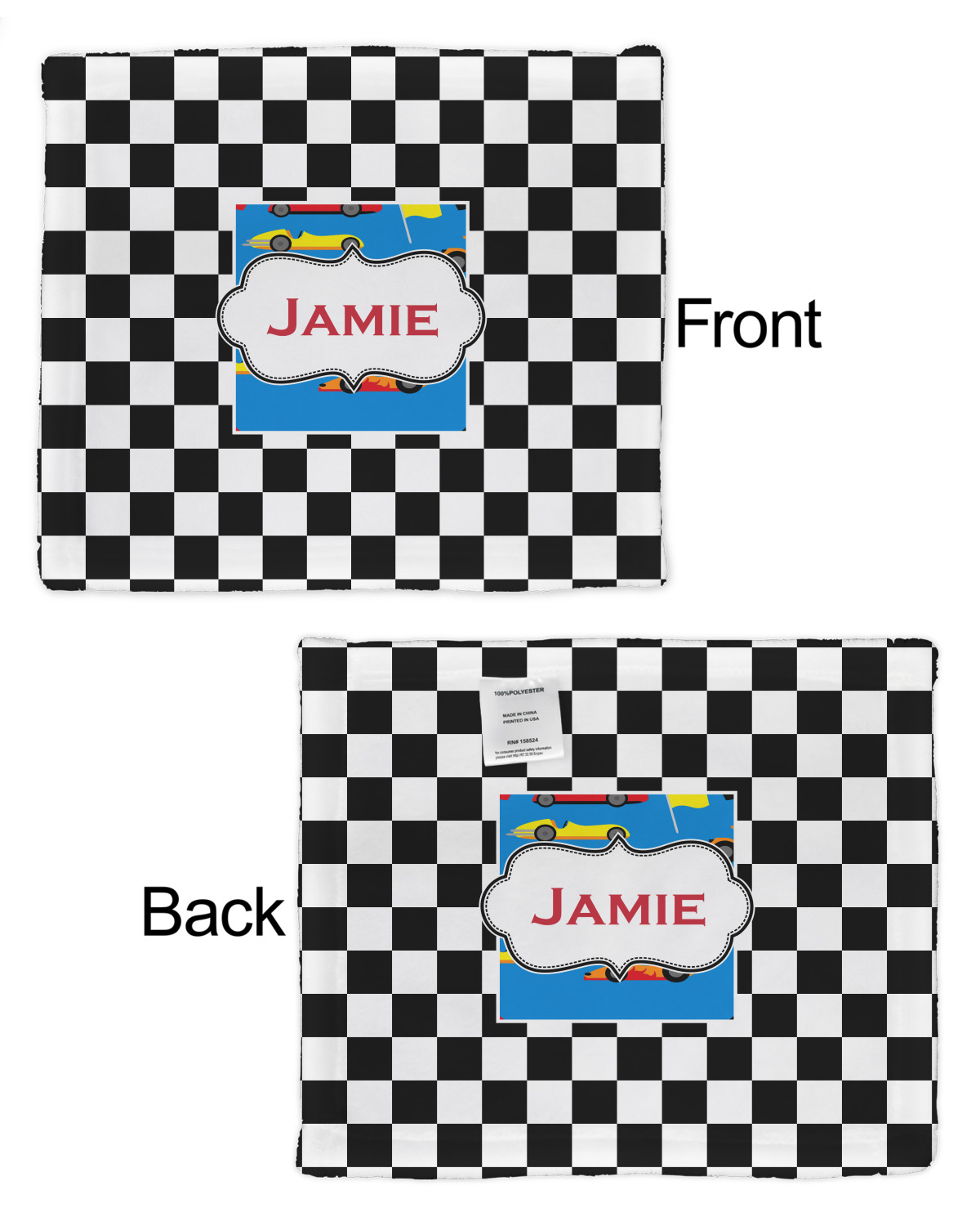 Your customization is displayed across both the front and back, and we provide you with the option to choose the same or different designs on both sides.