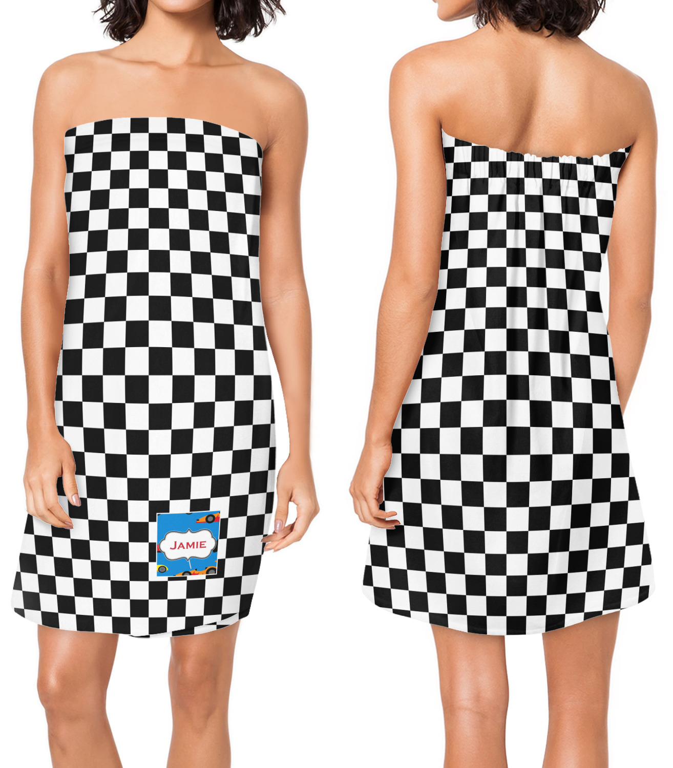 Made from a plush, fleece fabric, these luxurious towel wraps are comfortable and absorbent. They are printed, cut, and sewn for you, right here in the USA, after you place your order. These personalized bath wraps measure at approximately 59 by 32 inches, and display your customization across the outside.
