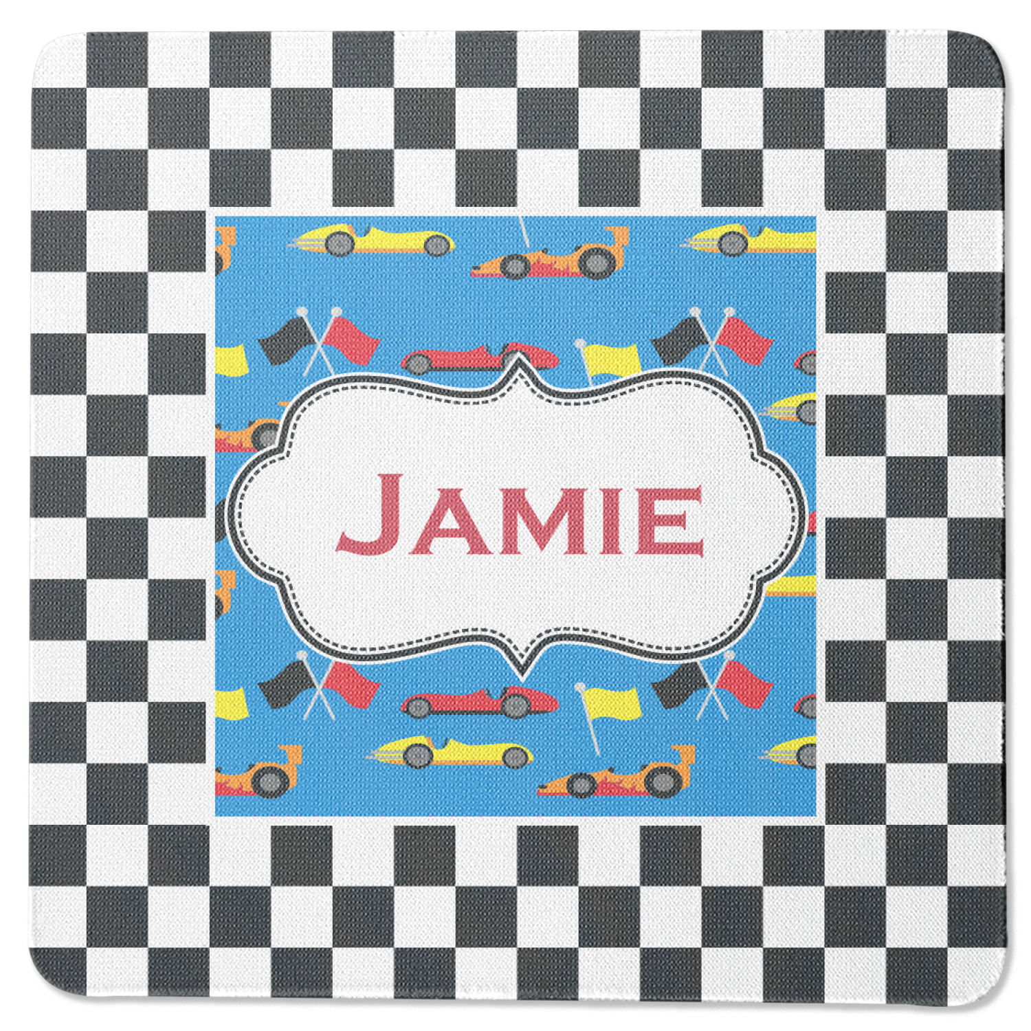 We love this checker and race car design; it uses our new concentric design style and we think it looks simply fabulous. We chose the use our race cars background on the inside, while using our classic checkers background on the outside.