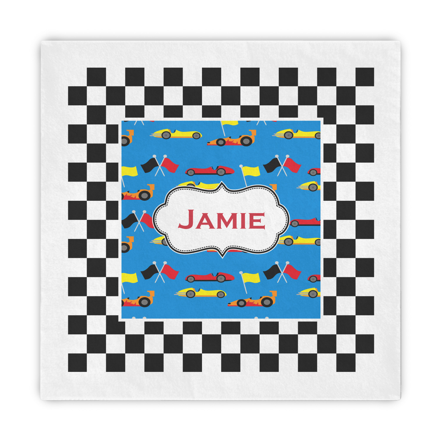 We love this checker and race car design; it uses our new concentric design style and we think it looks simply fabulous. We chose the use our race cars background on the inside, while using our classic checkers background on the outside.