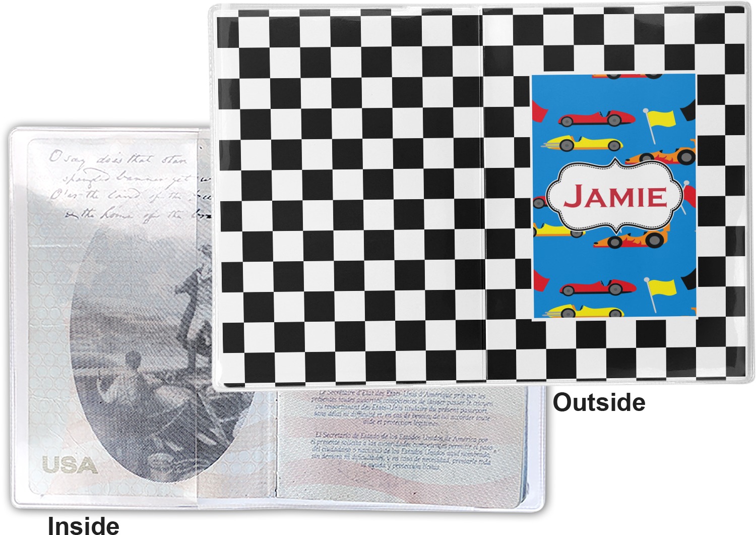 This cover is made of a sturdy clear vinyl with a personalized vinyl insert inside. There is a large and a small pocket on either side to hold the covers of your passport easily and firmly. The passport holder is approximately 7.5" x 5.25", the perfect size to snugly fit your passport. This slim cover is the perfect way to protect your passport without being one more bulky item you have to carry.