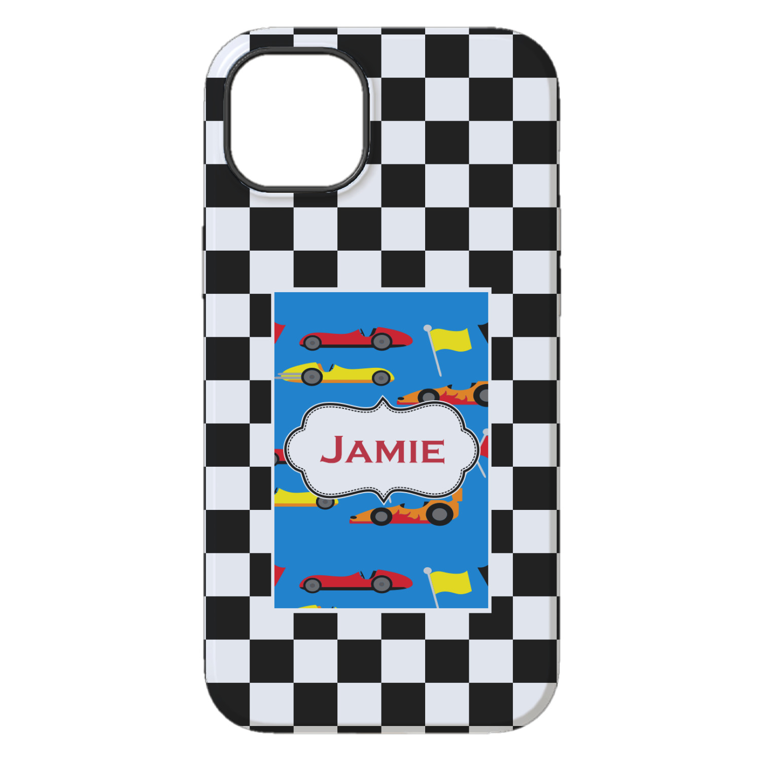 We love this checker and race car design; it uses our new concentric design style and we think it looks simply fabulous. We chose the use our race cars background on the inside, while using our classic checkers background on the outside.