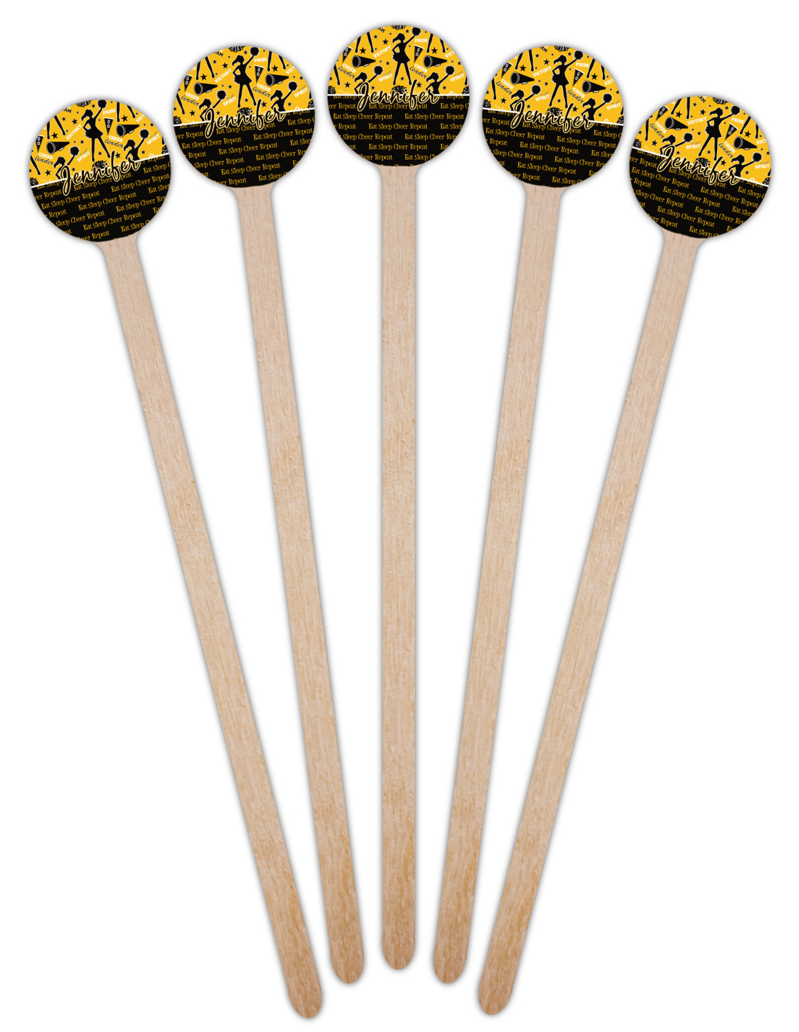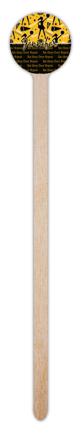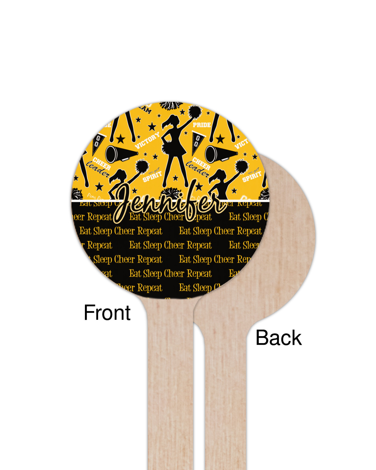 This design is a fun combo with a bright yellow and black. The two colors are a great contrast to one another. The top half of the design has a cheerleader sillhouette as well as words like "cheerleader" and "victory." The bottom half has a background that says eat, sleep, cheer, repeat. Your personalization goes right in between these two backgrounds right in the middle.