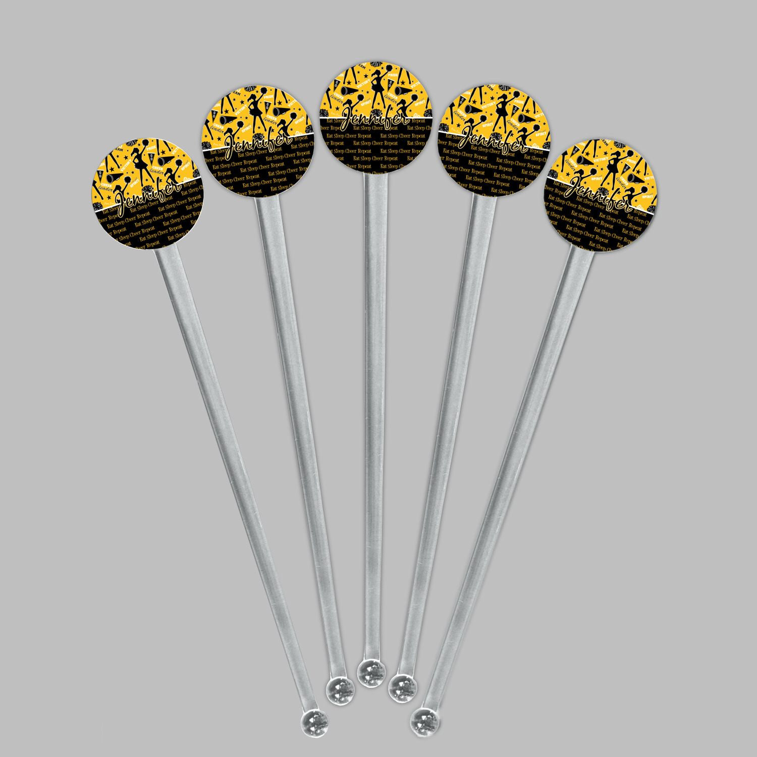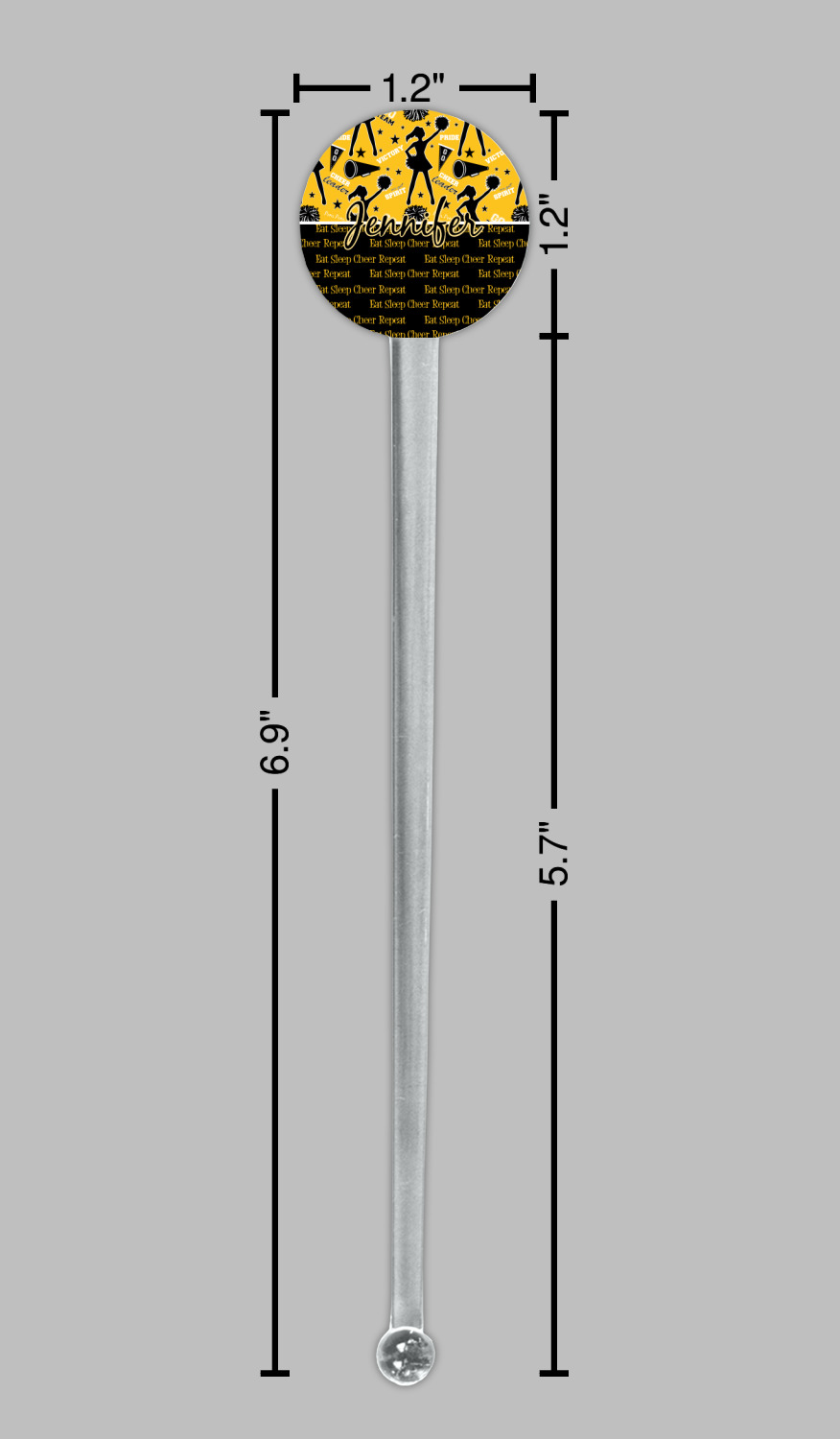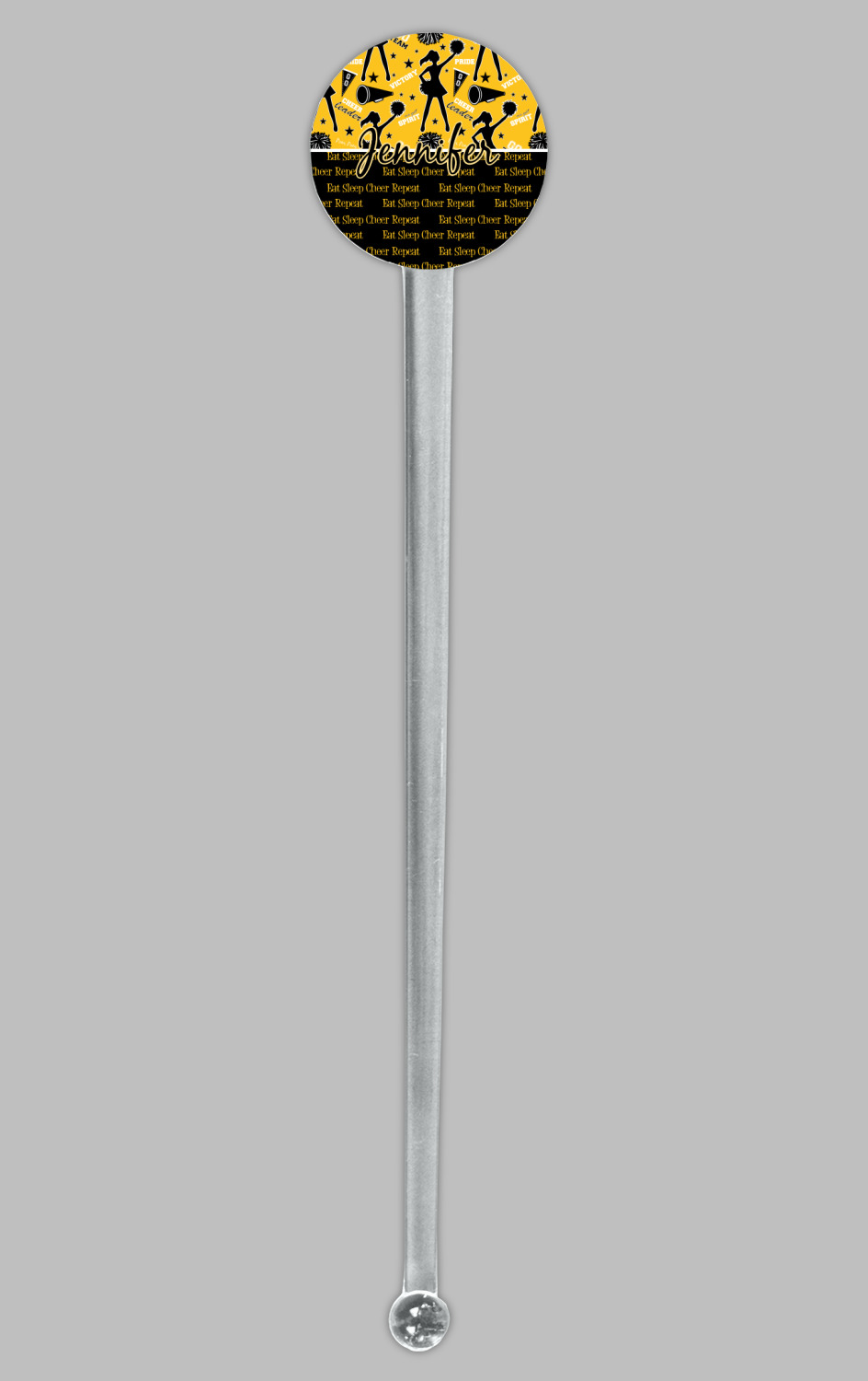 This design is a fun combo with a bright yellow and black. The two colors are a great contrast to one another. The top half of the design has a cheerleader sillhouette as well as words like "cheerleader" and "victory." The bottom half has a background that says eat, sleep, cheer, repeat. Your personalization goes right in between these two backgrounds right in the middle.