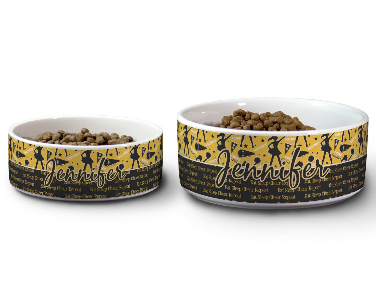 Our customized, ceramic dog bowls allow you to fashion a durable, yet expressive gift for your pet. These bowls are fashionably versatile; they suit both cats and dogs and can hold either food or water. Add your pet's name or favorite color to the design, and spruce up his/her eating area with one or two personalized pet bowls!