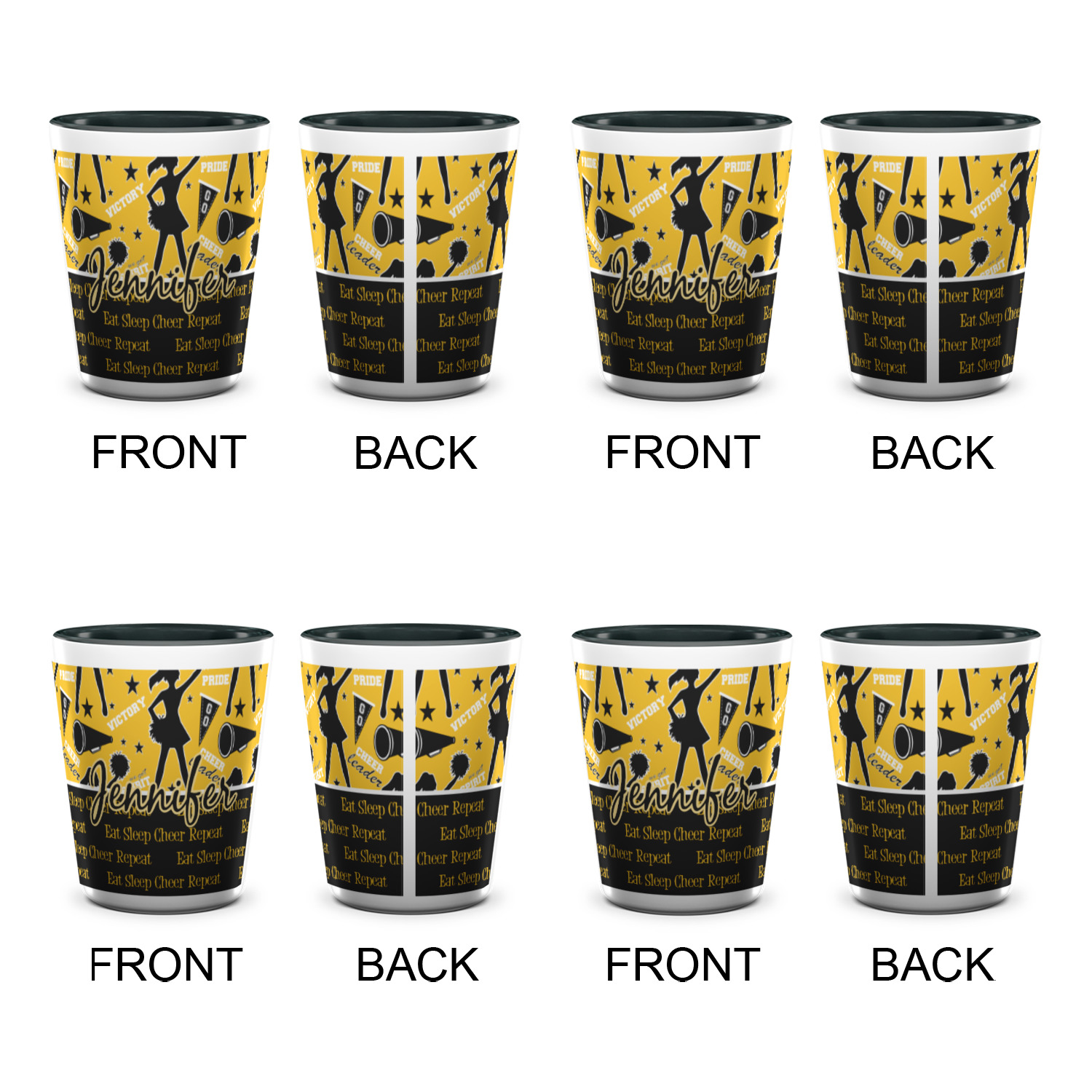 Made from ceramic these shot glasses are printed in full color with the design of your choice. These are a standard 1.5oz size and stand 2.25" tall. Available in a full white ceramic or a two-tone with a black color inside the shot glass. Buy a single or a set of 4, all of which can be designed separately to get you just what you want and need.