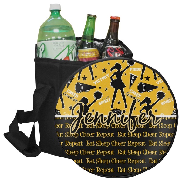 Our collapsible insulated coolers feature a unique six-sided hexagon shape, are lightweight, durable and can be turned into a seat. This cooler is fully insulated with silver foil lining to keep food and drinks hot or cold, and has a 12-quart capacity. Although this cooler collapses for easy transport, hidden inside are composition panels made of sturdy wood that give the frame strength and allow this cooler to be used as a seat. Simply sit down on the personalized cover and give your legs a break! (Maximum weight capacity of 200 pounds.)