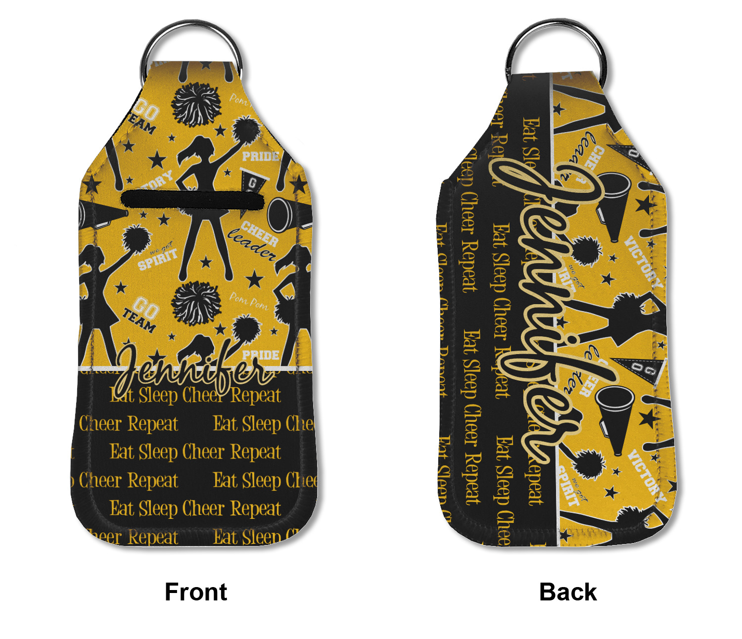 Each hand sanitizer holder comes with its own empty travel-sized, refillable hand sanitizer sure to fit snug in your customized sanitizer case! Our hand sanitizer cases are a durable, yet soft neoprene material sure to last any daily activities or travel agenda. Customize and personalize a hand sanitizer bottle holder with one of our two sizes - small (4.25" x 2.25") or large (5.5" x 2.5"). Each travel sanitizer holder comes with a keyring for attachment on bags, keys, or more!