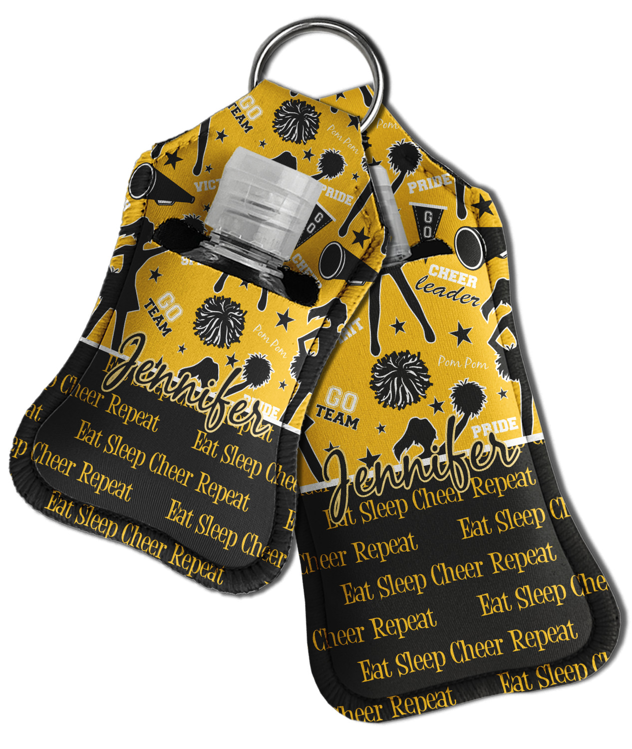 Each hand sanitizer holder comes with its own empty travel-sized, refillable hand sanitizer sure to fit snug in your customized sanitizer case! Our hand sanitizer cases are a durable, yet soft neoprene material sure to last any daily activities or travel agenda. Customize and personalize a hand sanitizer bottle holder with one of our two sizes - small (4.25" x 2.25") or large (5.5" x 2.5"). Each travel sanitizer holder comes with a keyring for attachment on bags, keys, or more!