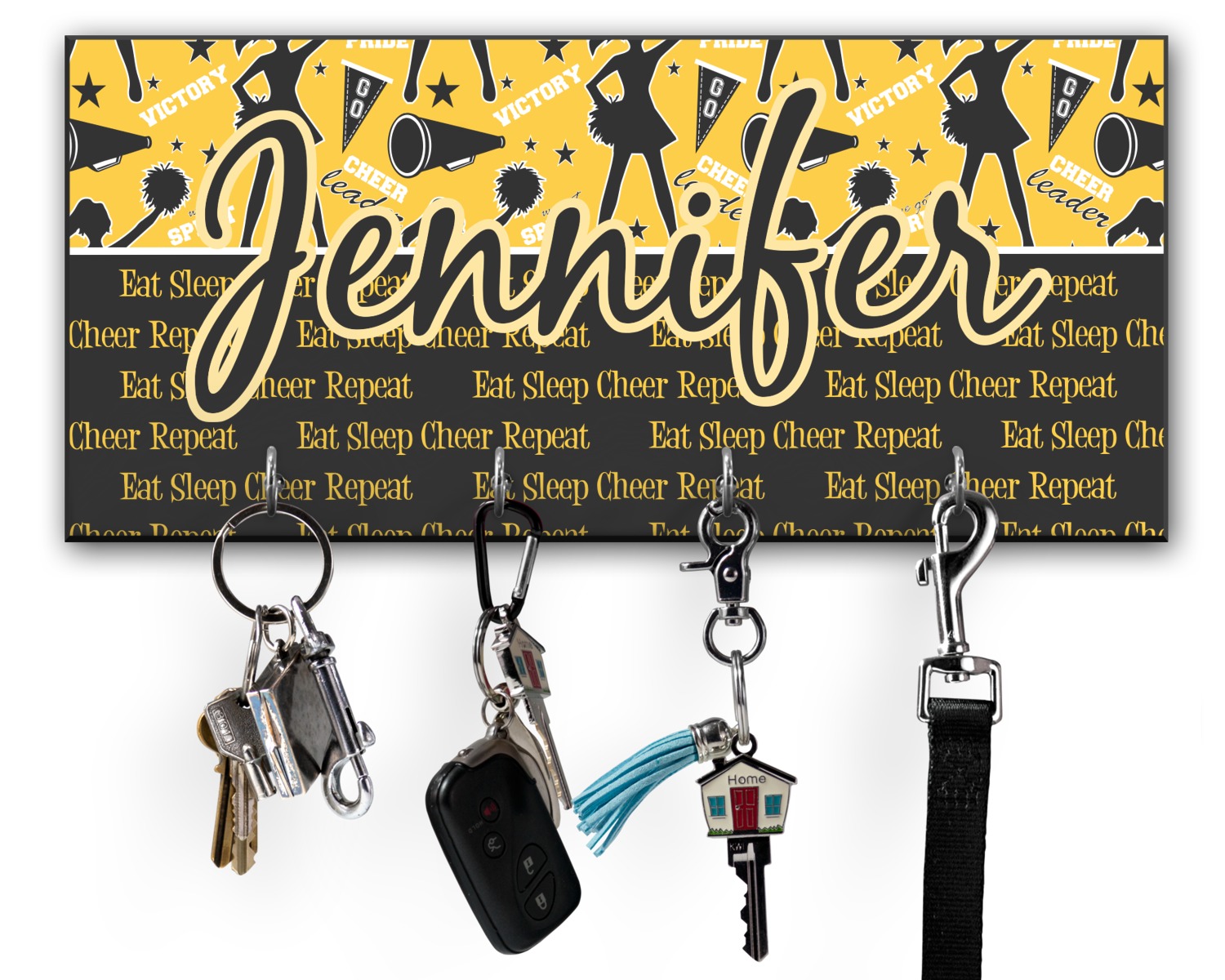 This 11" x 5" key hanger is made of sturdy wood and has four metal hooks lining the bottom. This is the perfect size for a family with several drivers. Not only can you hang keys on it though, but pet leashes and other small items. The board is black on the sides and back and is printed with the design of your choice on the front.